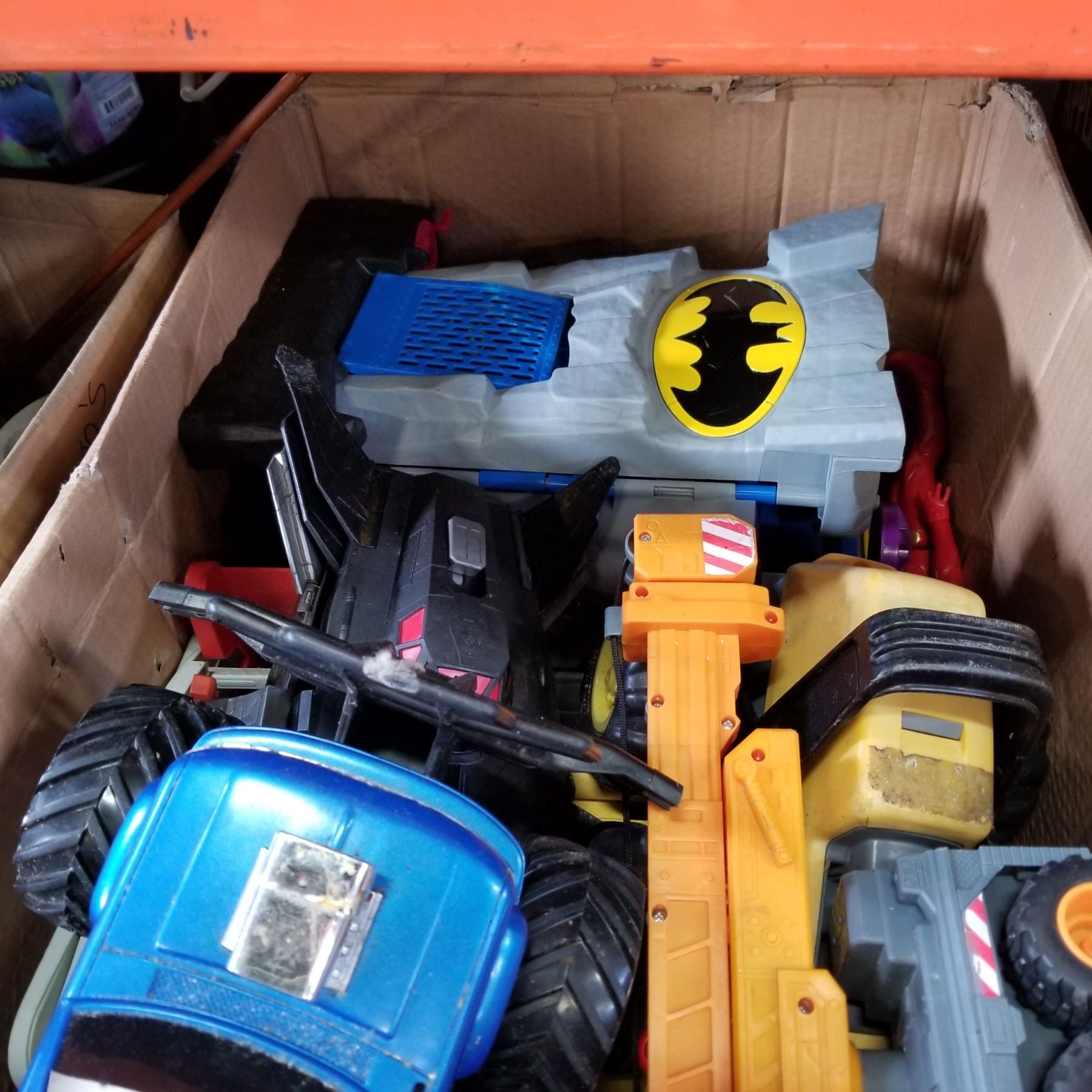 BOX LOT OF KIDS TOYS W/ BATCAVE