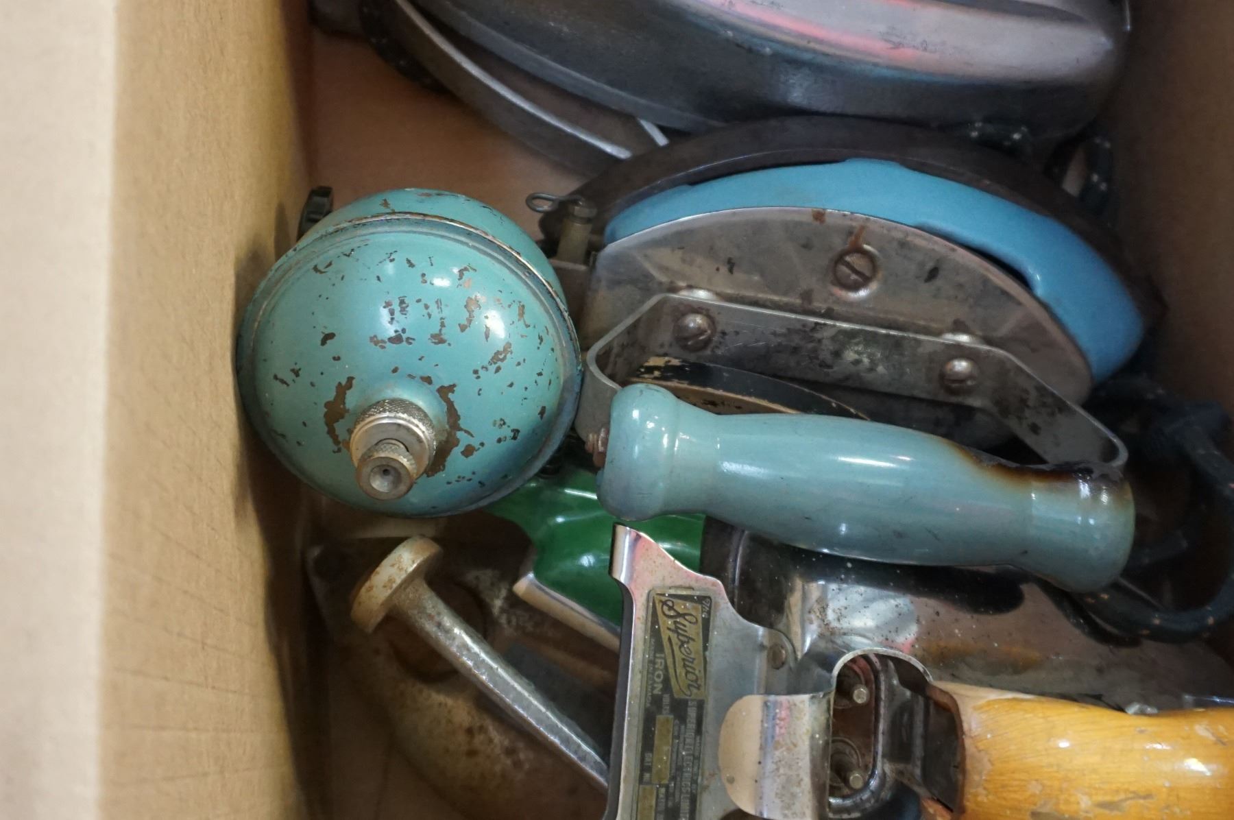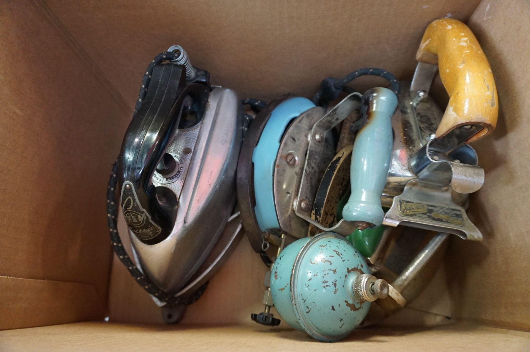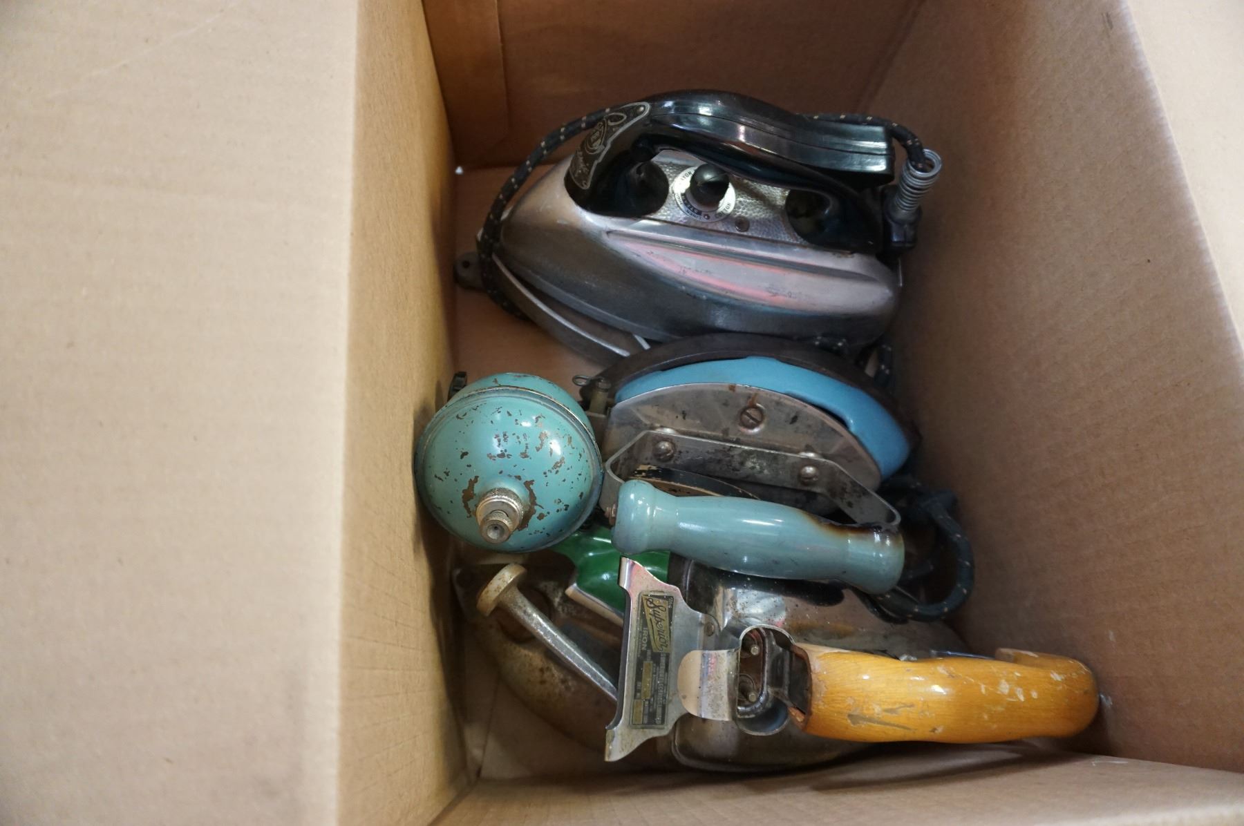 BOX LOT OF VINTAGE IRONS