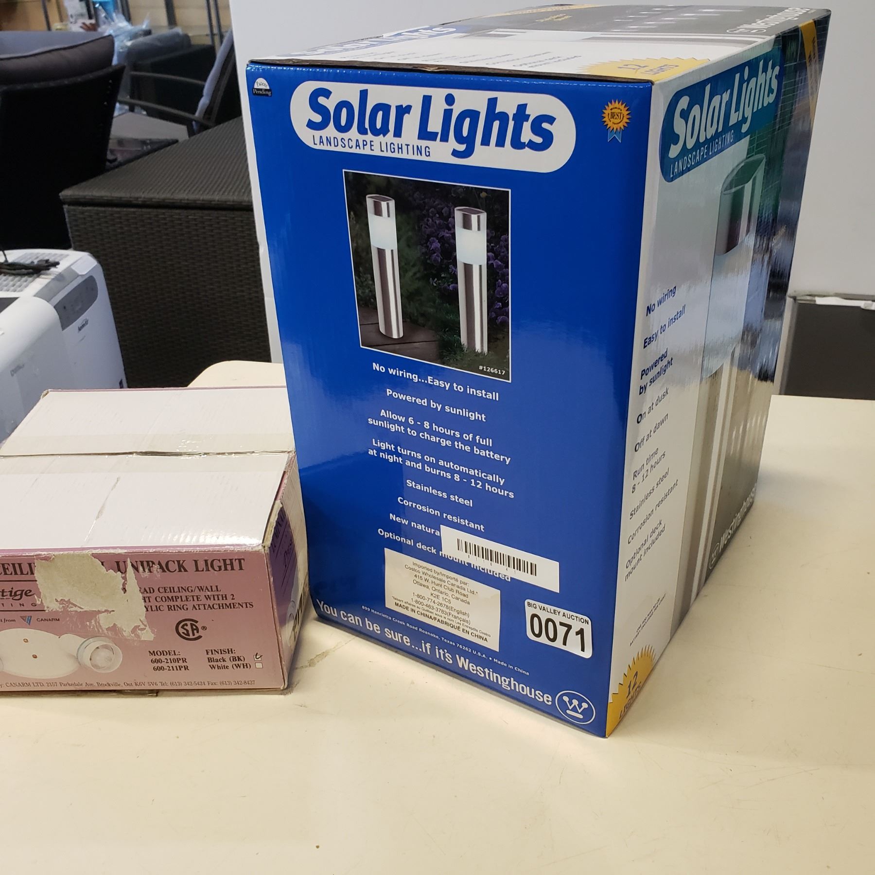 BOX OF 12 SOLAR LANDSCAPE LIGHTS AND MOTION LIGHT