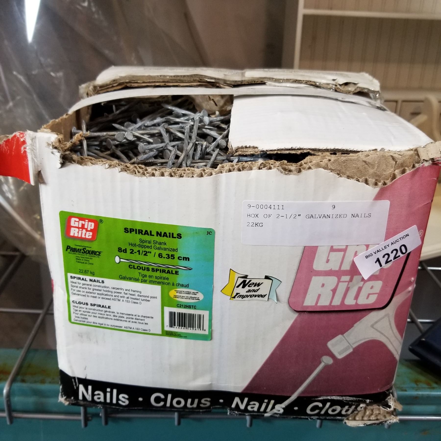 BOX OF 2-1/2" GALVANIZED NAILS 22KG