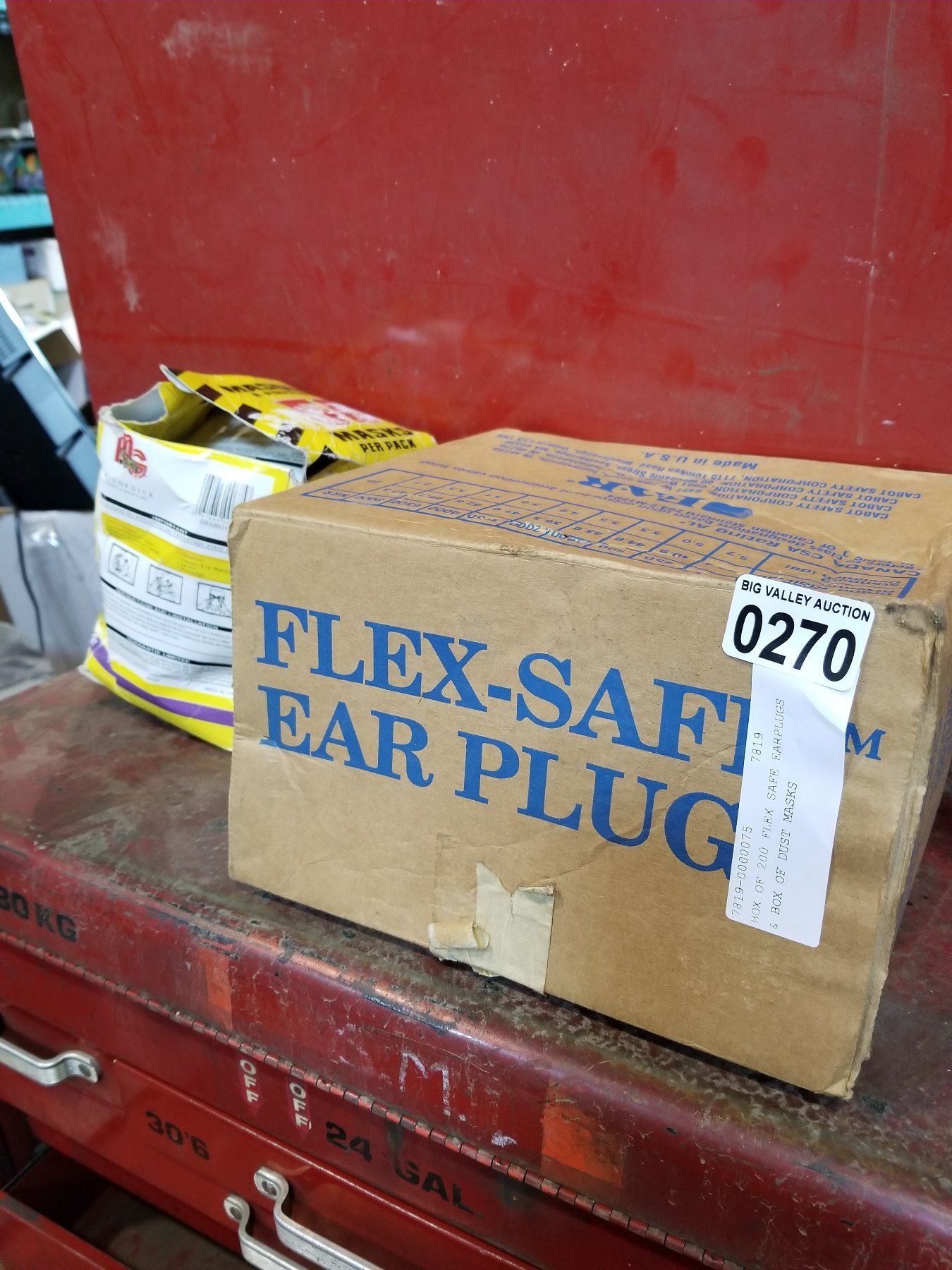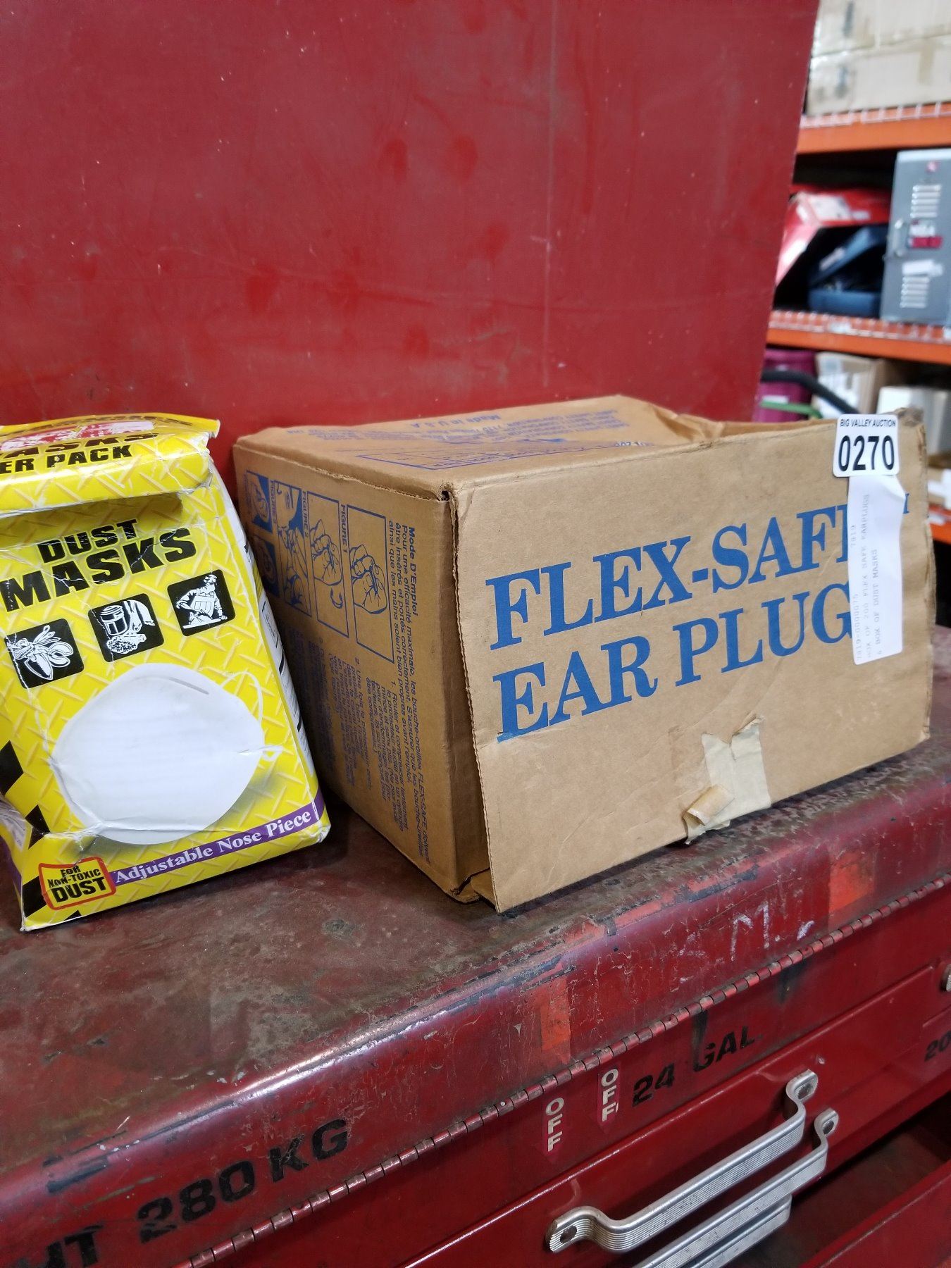 BOX OF 200 FLEX SAFE EARPLUGS & BOX OF DUST MASKS