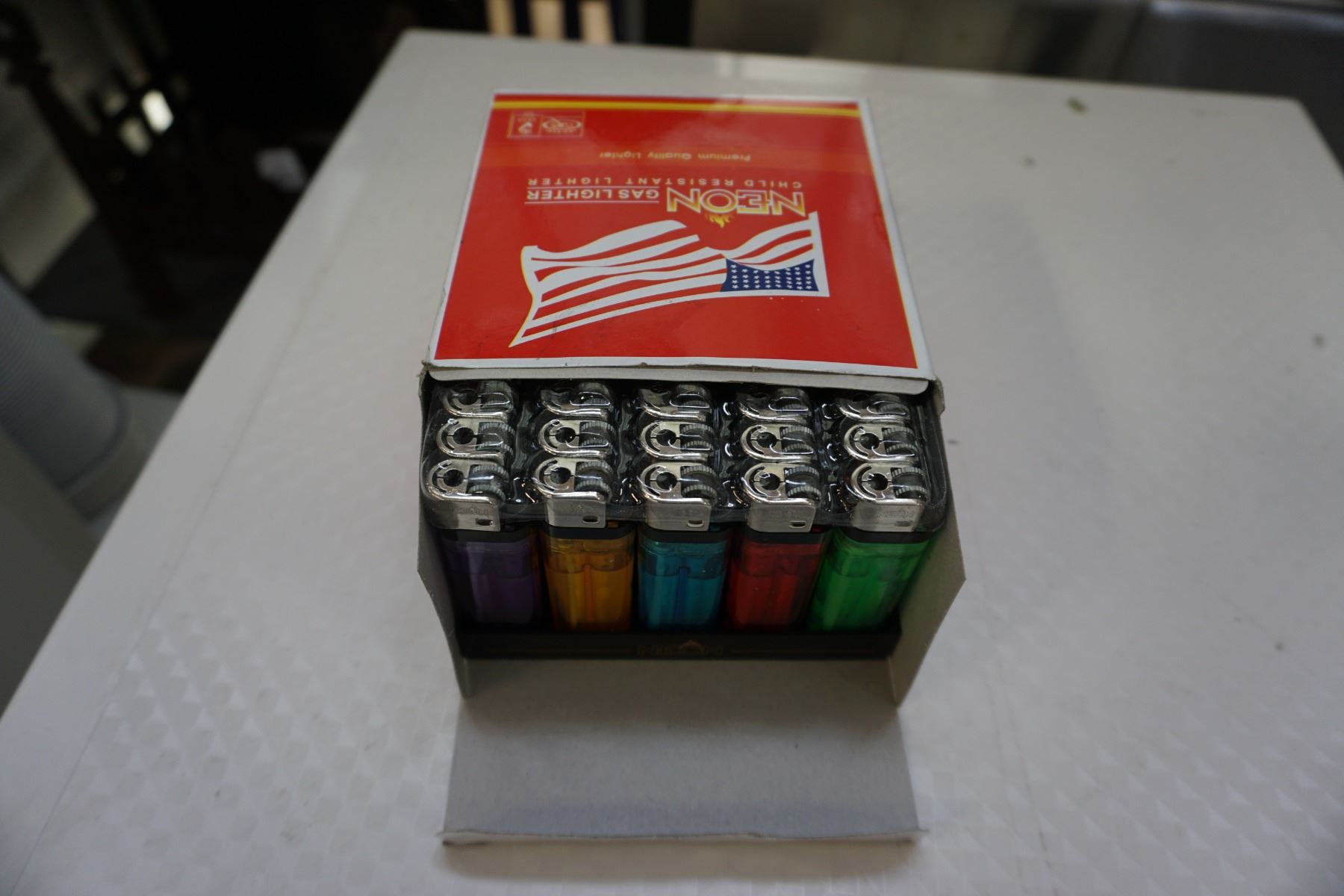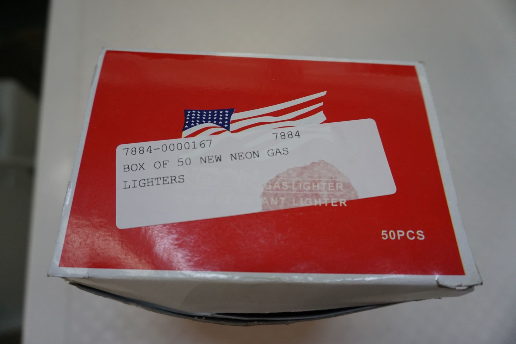 BOX OF 50 NEW NEON GAS LIGHTERS