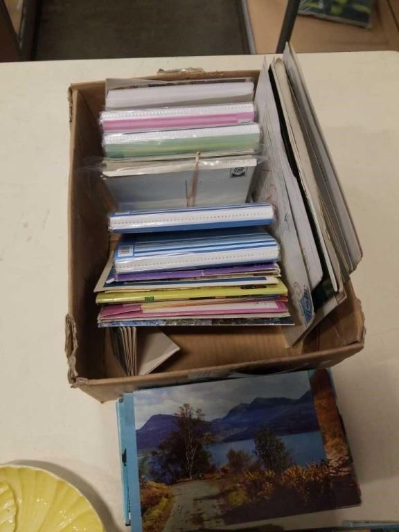 BOX OF 600+ VINTAGE POSTCARDS, SOME WITH STAMPS AND CARLTON WARE BUTTERCUP PLATE