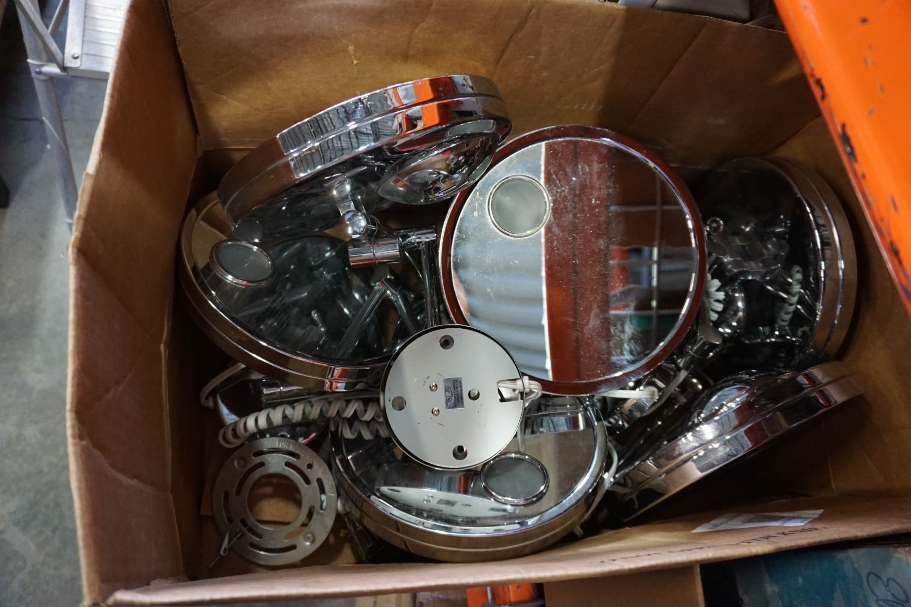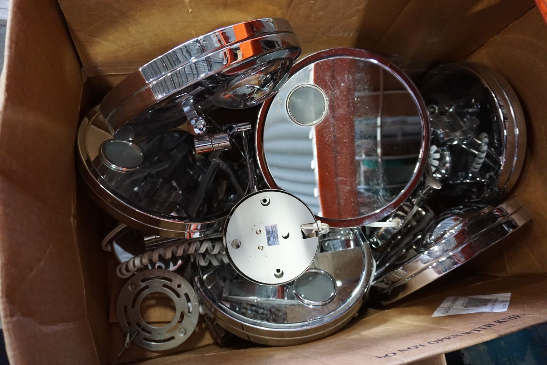BOX OF 7 METAL ARTICULATING LIGHT UP MIRRORS - WORKING