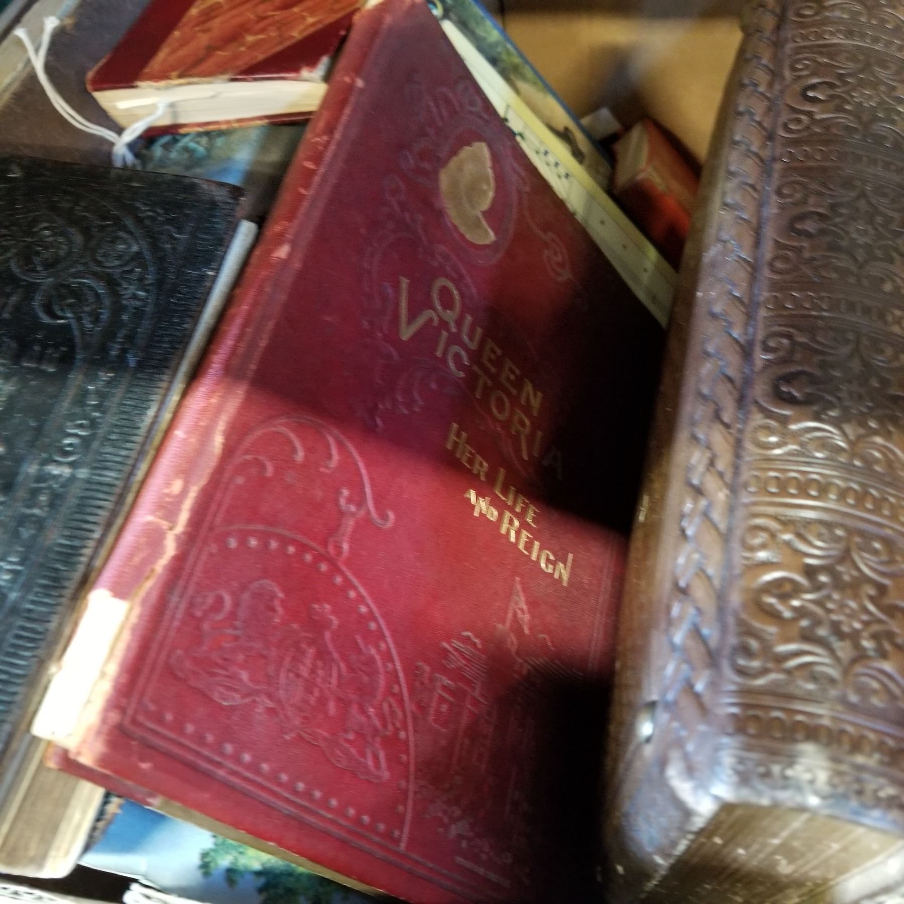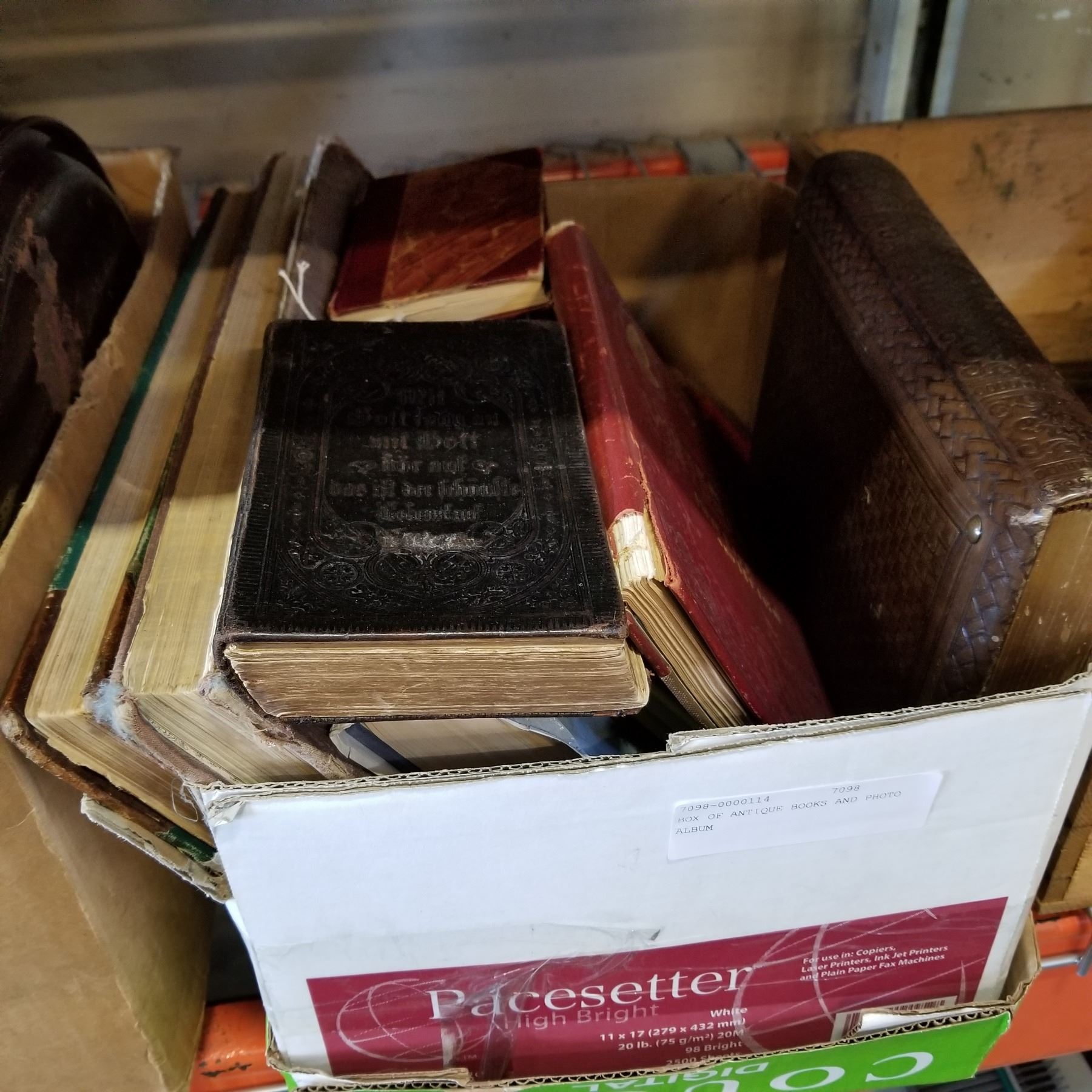 BOX OF ANTIQUE BOOKS AND PHOTO ALBUM