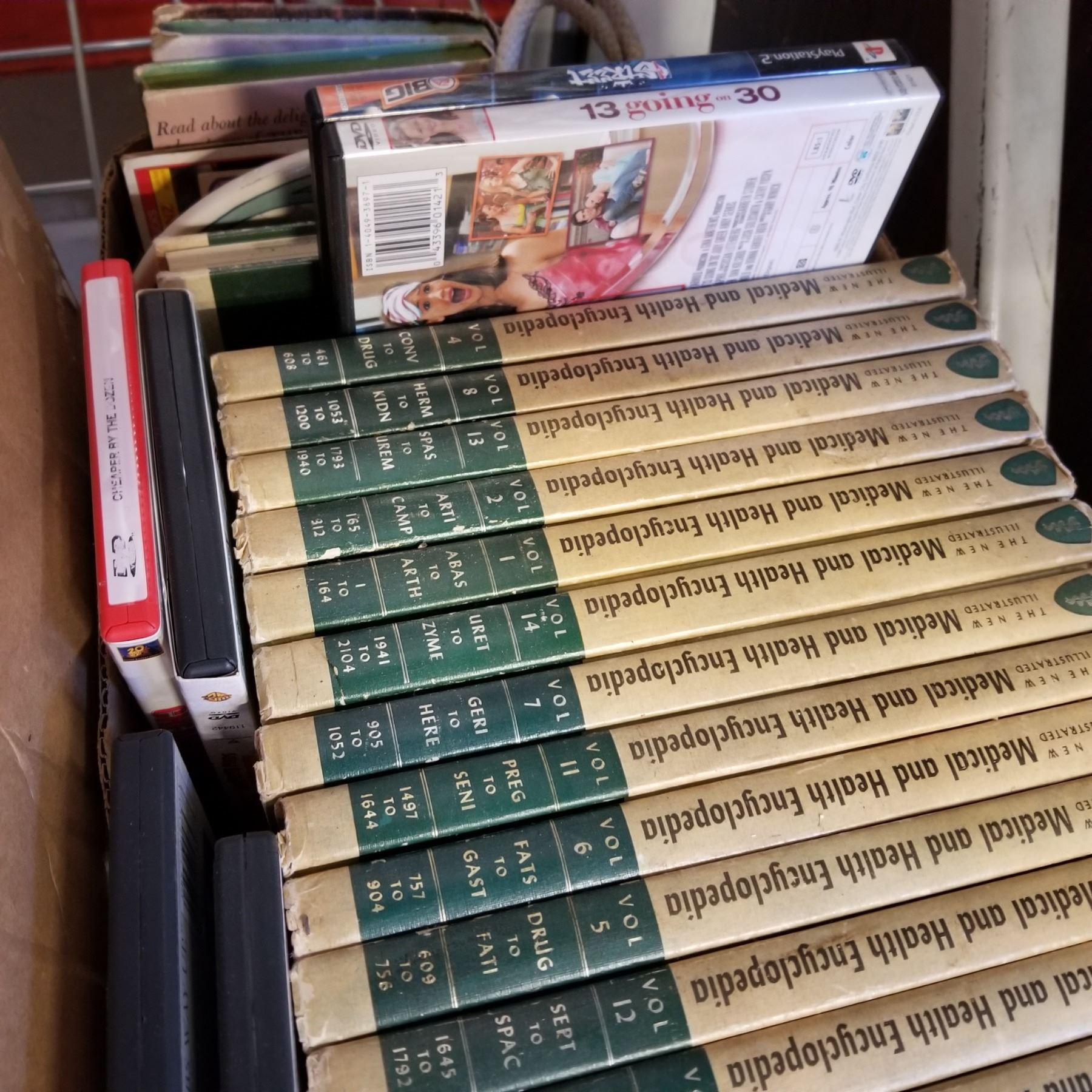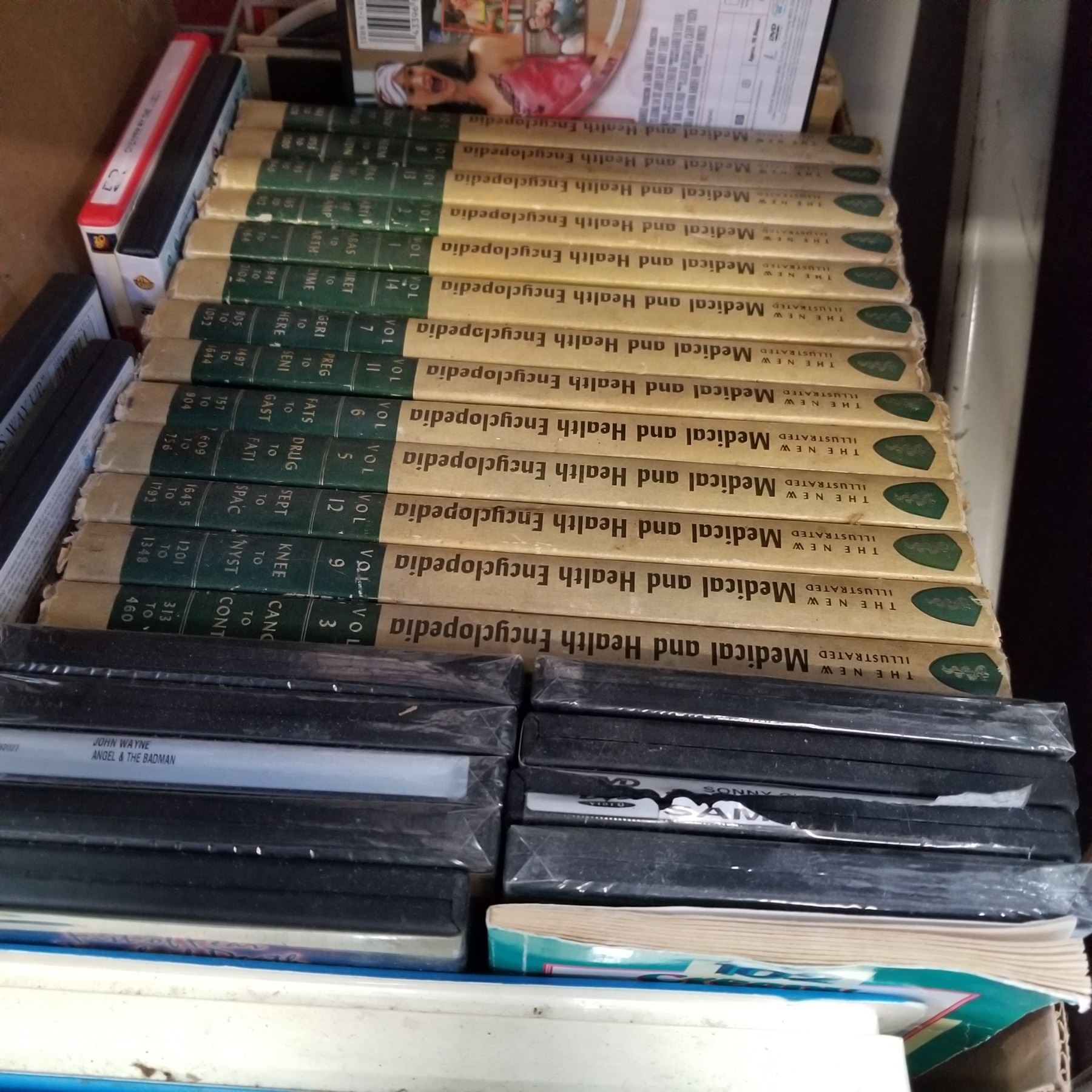 BOX OF ANTIQUE MEDICAL BOOKS, GAMES, ETC