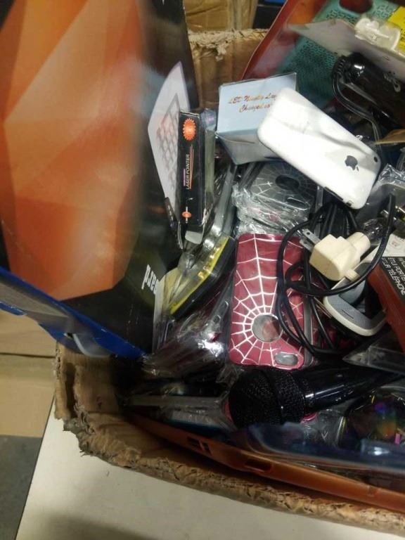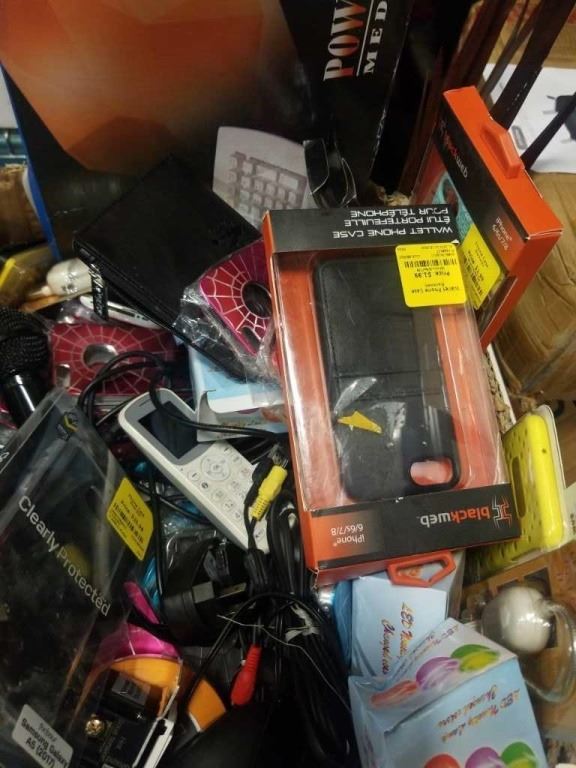 BOX OF APPROX 200 PHONE CASES, 4 KEYBOARDS AND ELECTRONICS