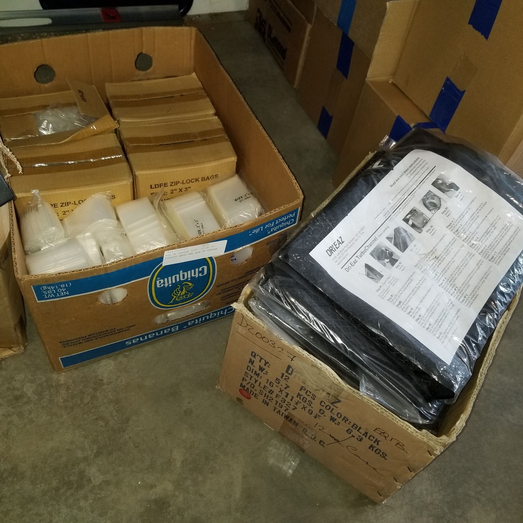 BOX OF APPROX 5000 2" BY 3" PLASTIC BAGS AND BOX OF DRIEAZ