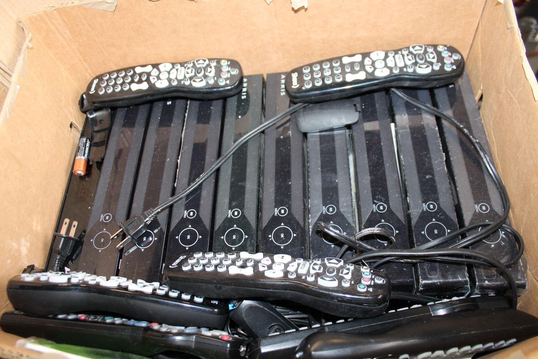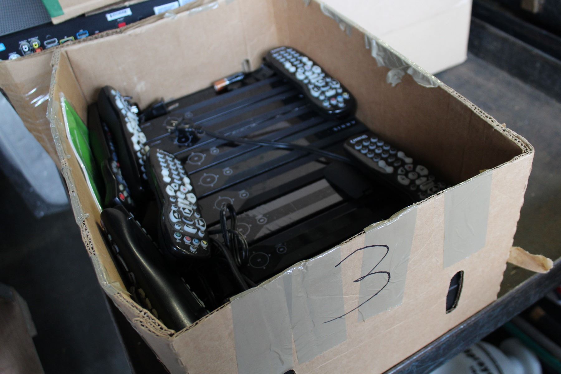 BOX OF ARIS CABLE BOXES AND REMOTES