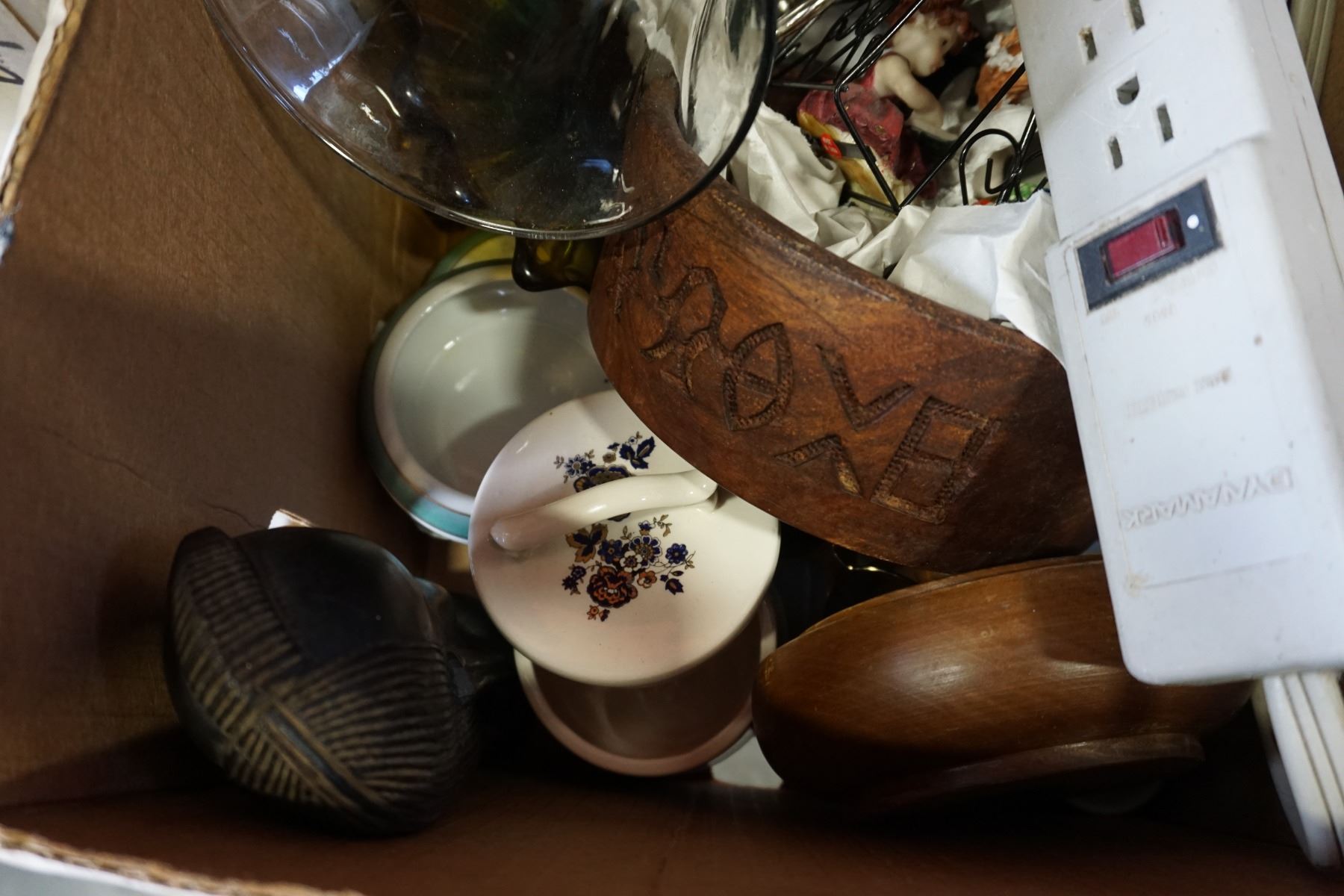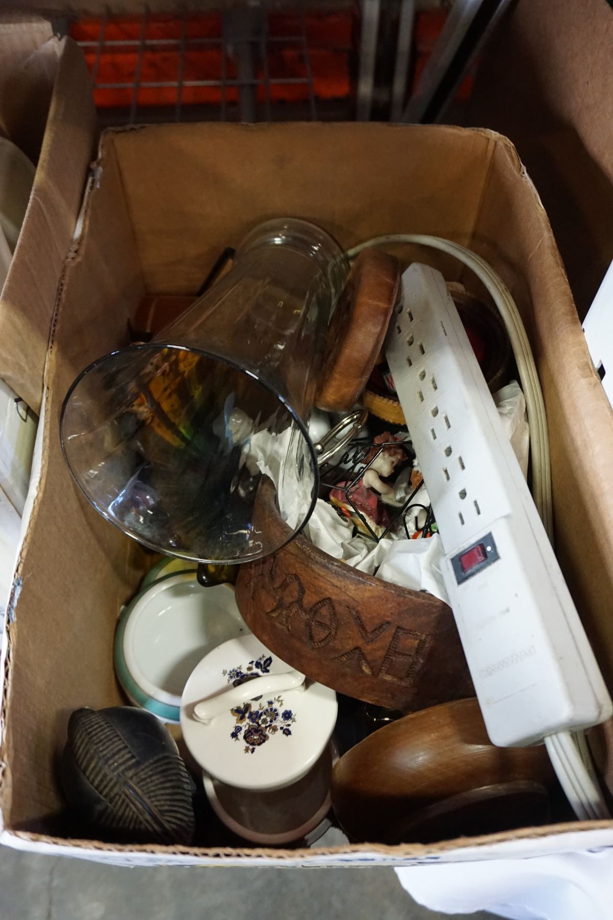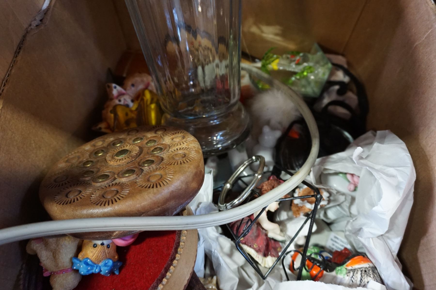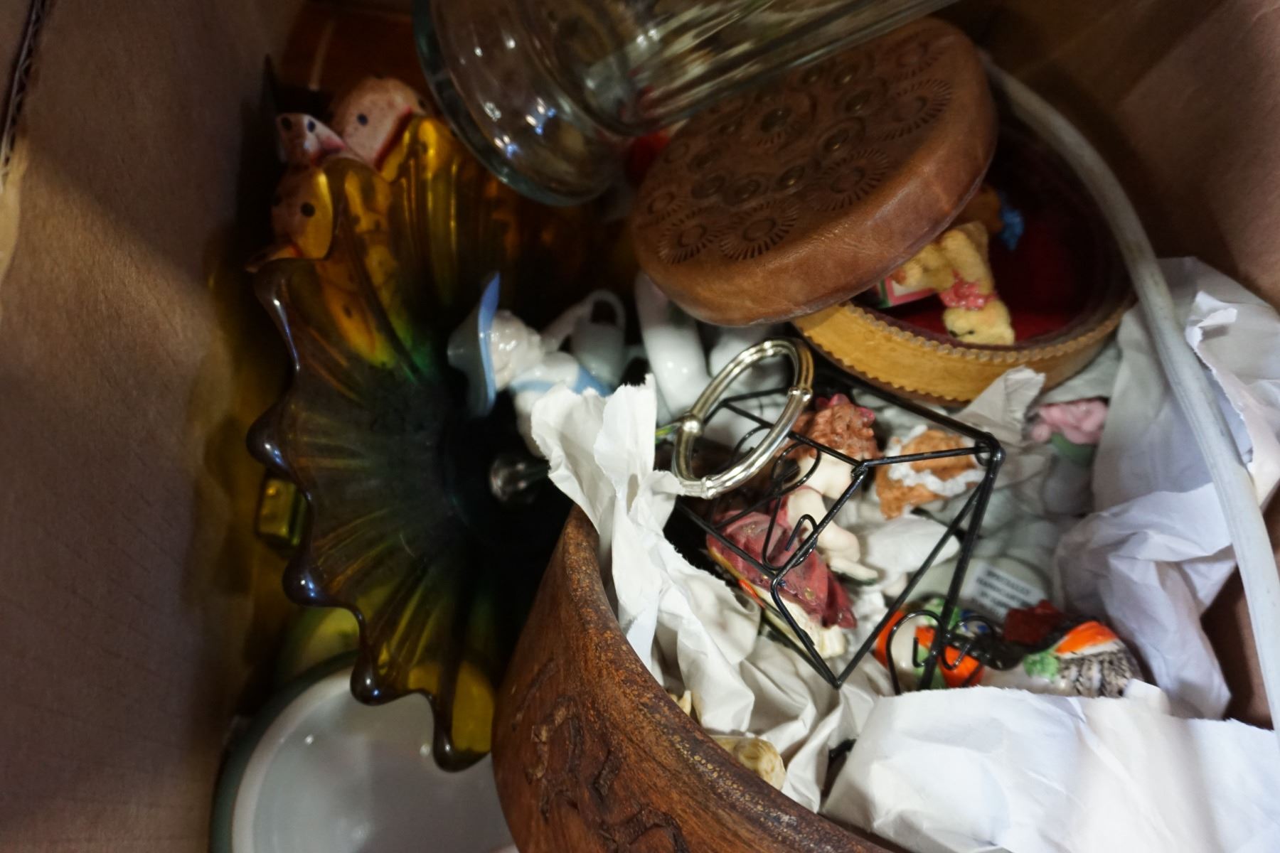 BOX OF ART GLASS, FIGURES, ESTATE GOODS