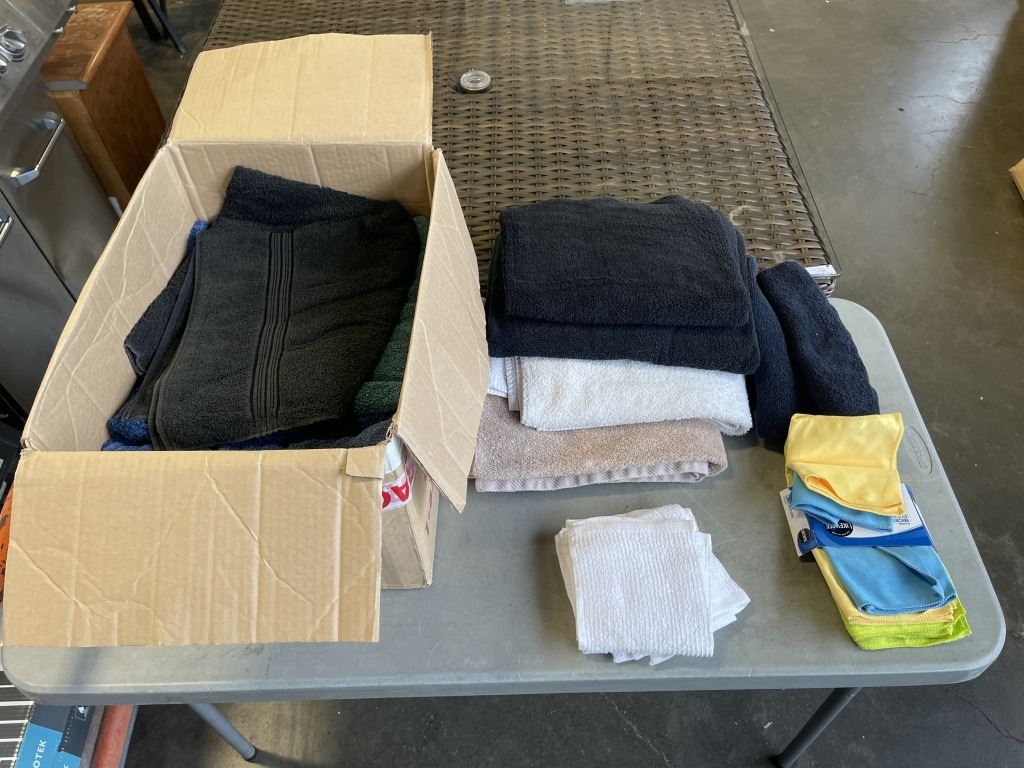 BOX OF ASSORTED BATH AND HAND TOWELS