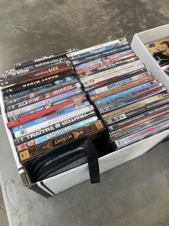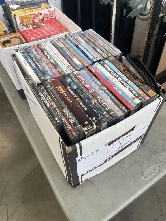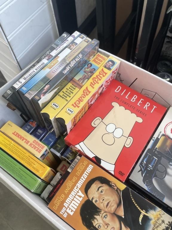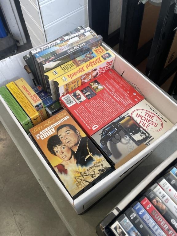 BOX OF ASSORTED DVDS AND COLLECTIBLE VHS TAPES