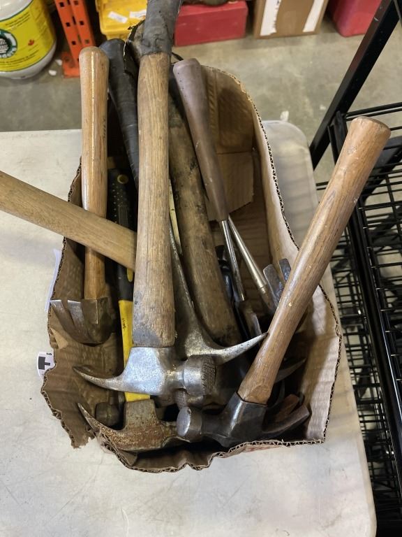 BOX OF ASSORTED HAMMERS