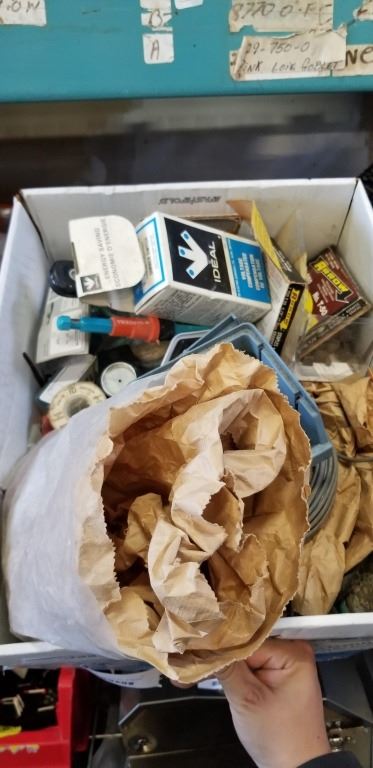 BOX OF ASSORTED HARDWARE, SCREWS AND NAILS