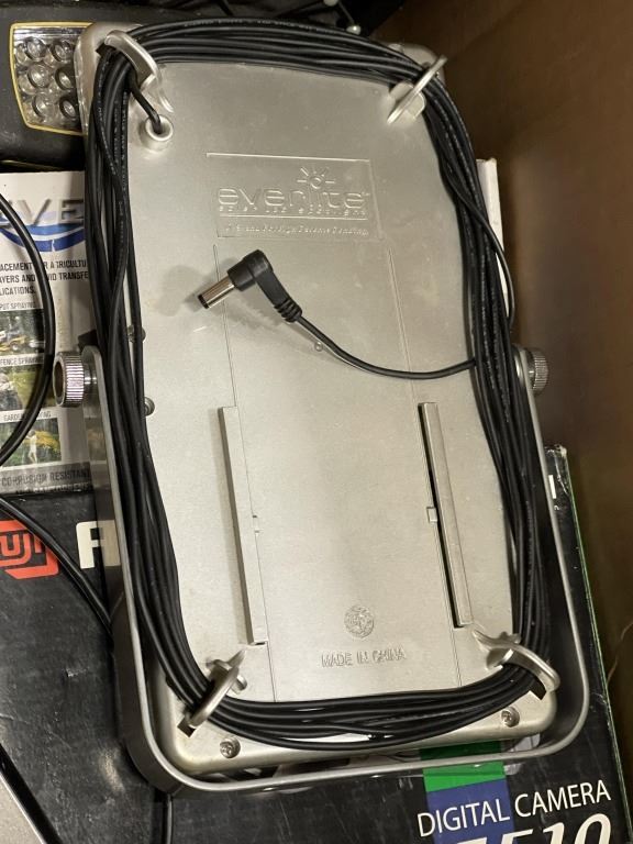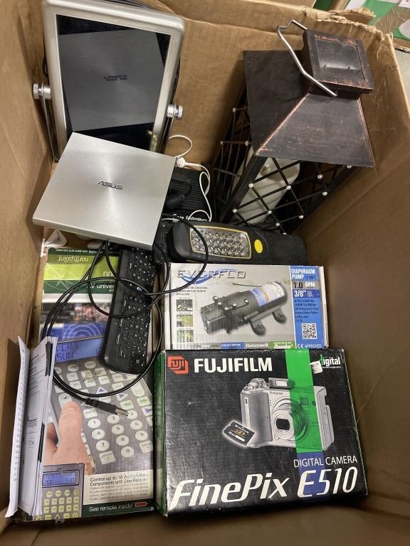BOX OF ASSORTED HOUSEHOLD ELECTRONICS AND CRATE OF NEW POPULAR MECHANICS MAGAZINES