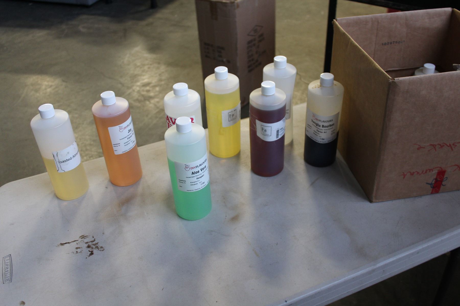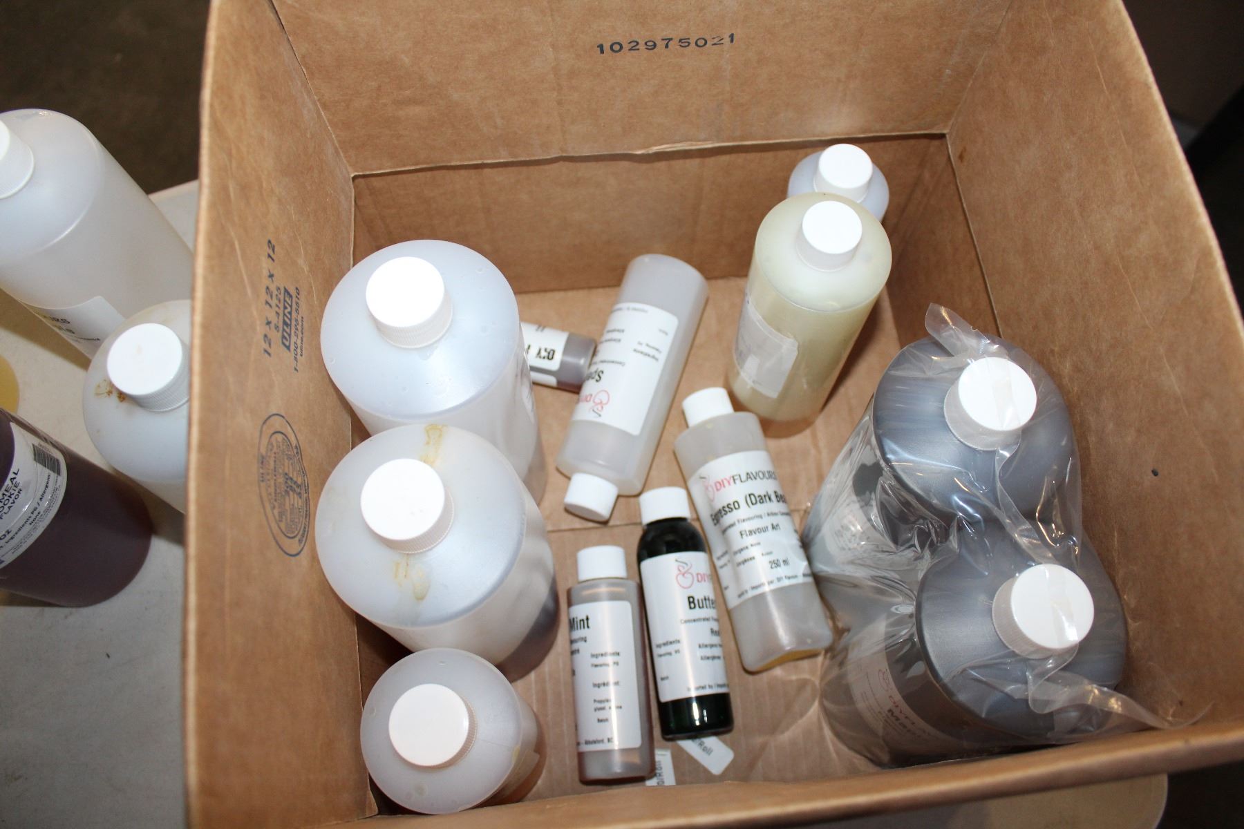 BOX OF ASSORTED JUGS OF FLAVOR EXTRACT