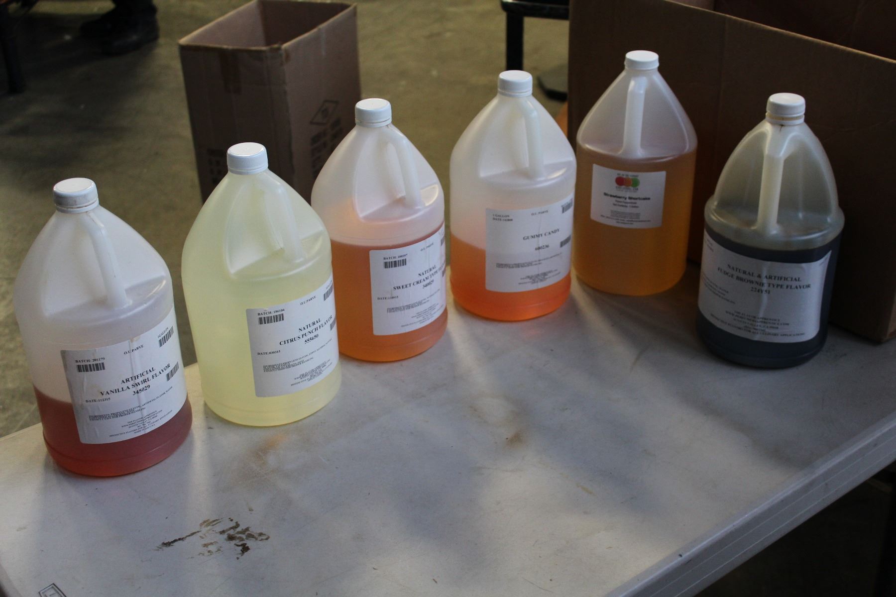 BOX OF ASSORTED JUGS OF FLAVOR EXTRACT