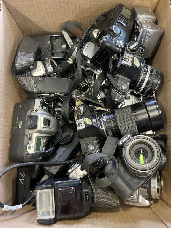 BOX OF ASSORTED VINTAGE 35MM CAMERAS