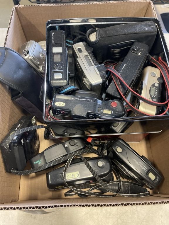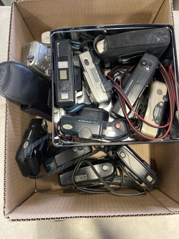 BOX OF ASSORTED VINTAGE 35MM CAMERAS