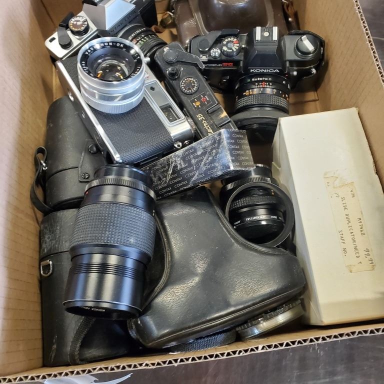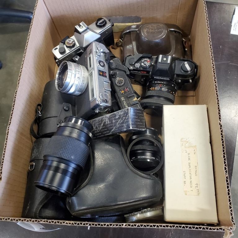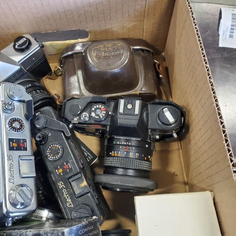 BOX OF ASSORTED VINTAGE 35MM CAMERAS