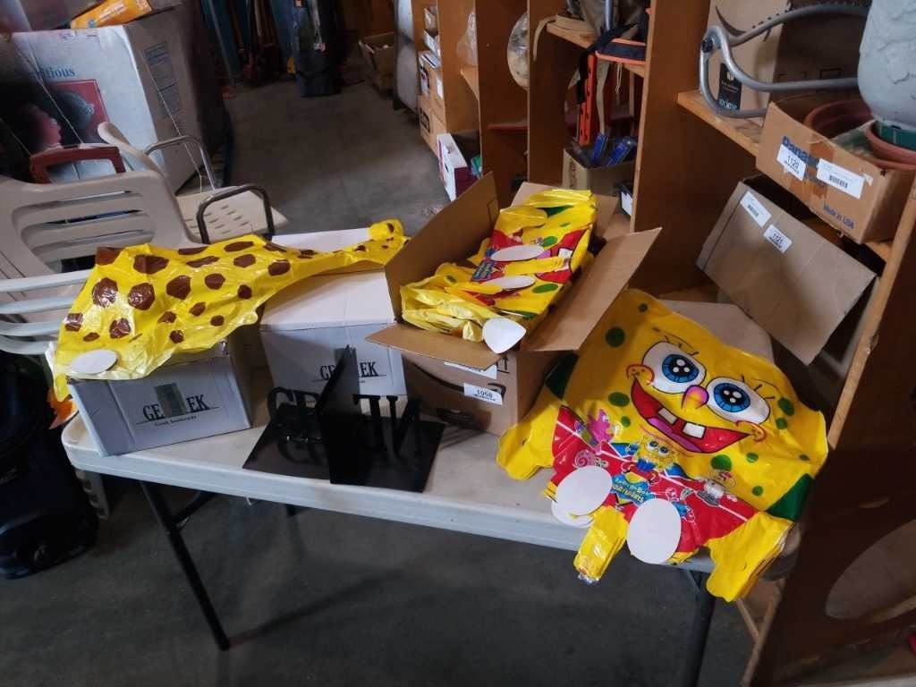 BOX OF BALOONS, SPONGEBOB, RACECAR, ETC AND BOOKENDS