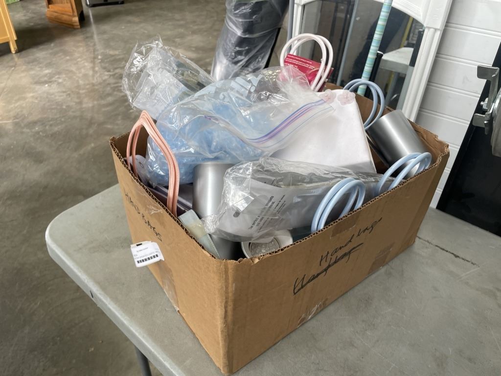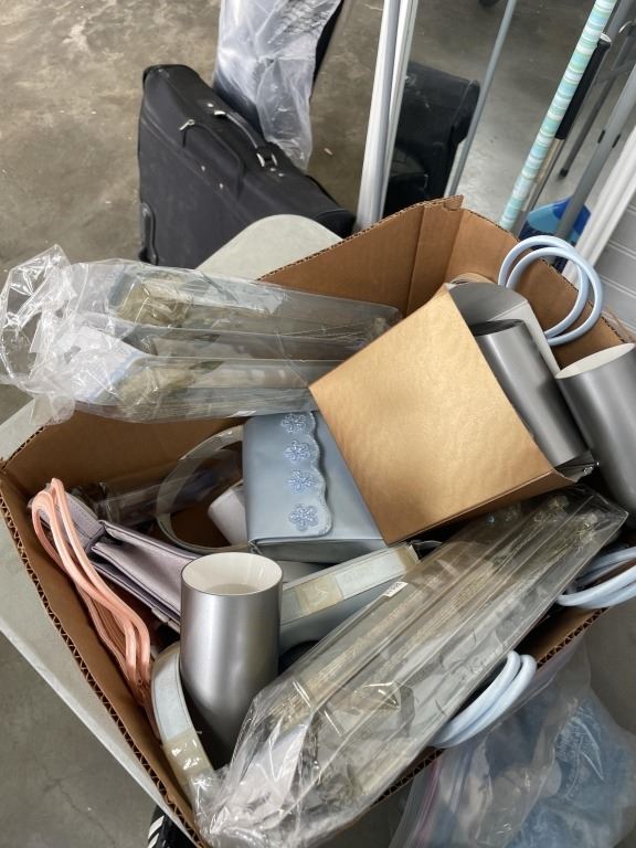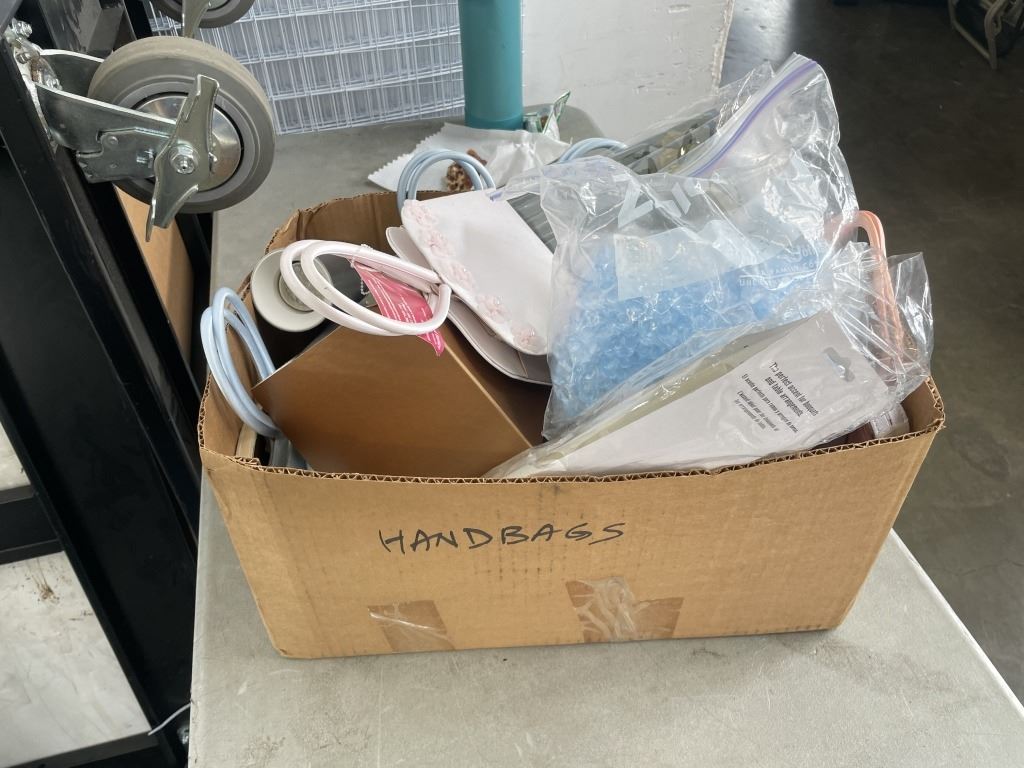 BOX OF BATTERY OPERATED LIGHTS, HAND BAGS AND MINI FRAMES