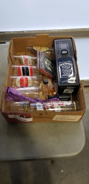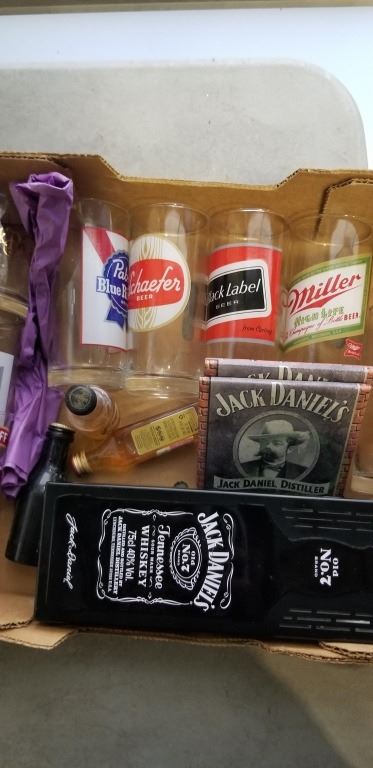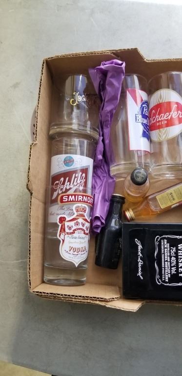 BOX OF BEER GLASSES, ETC