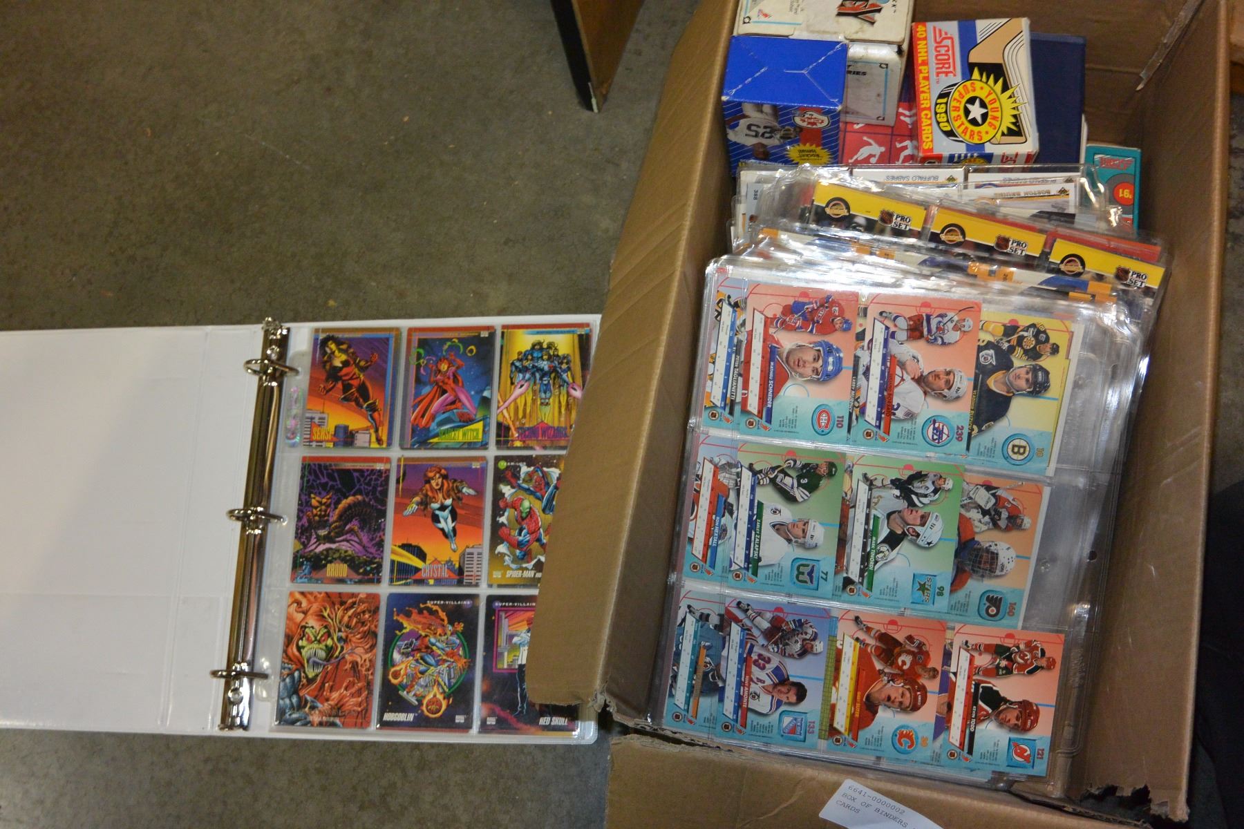 BOX OF BINDERS FULL OF HOCKEY CARDS