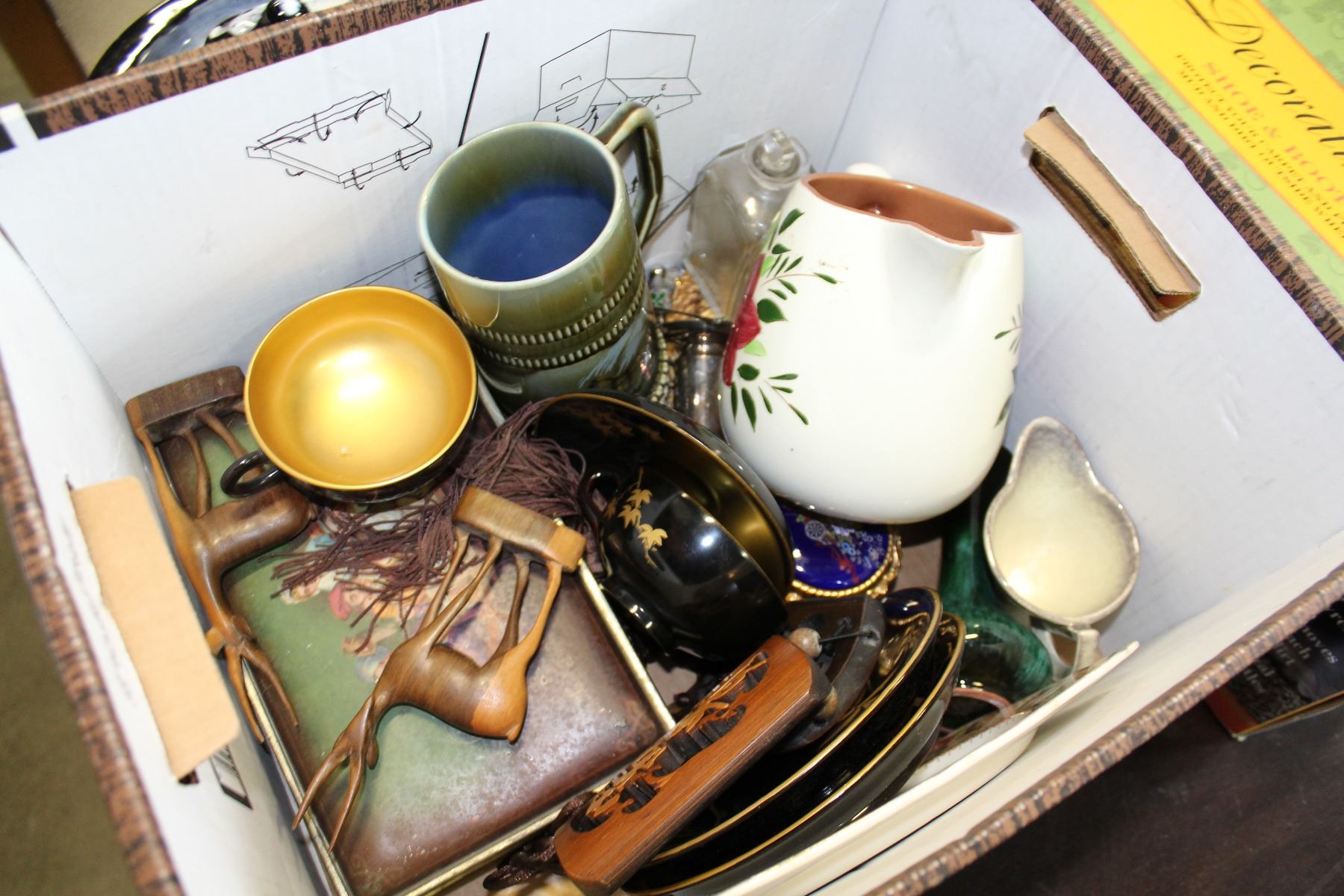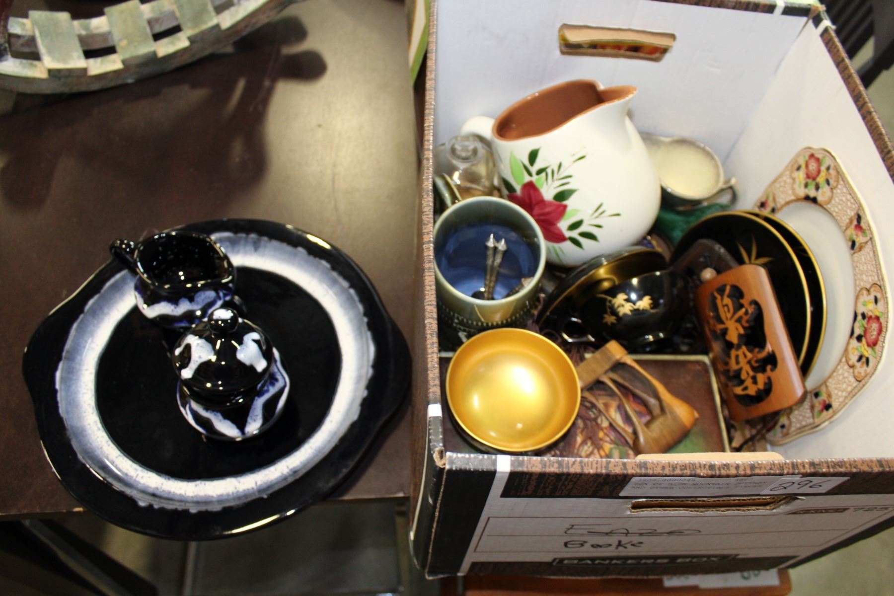 BOX OF BLUE MOUNTAIN POTTERY AND OTHER COLLECTIBLE PIECES
