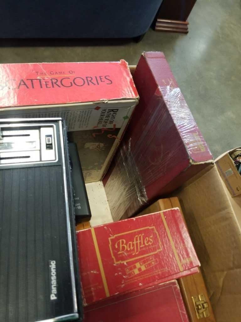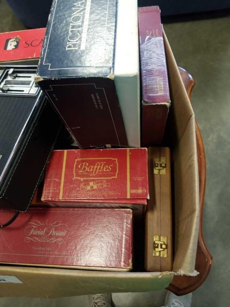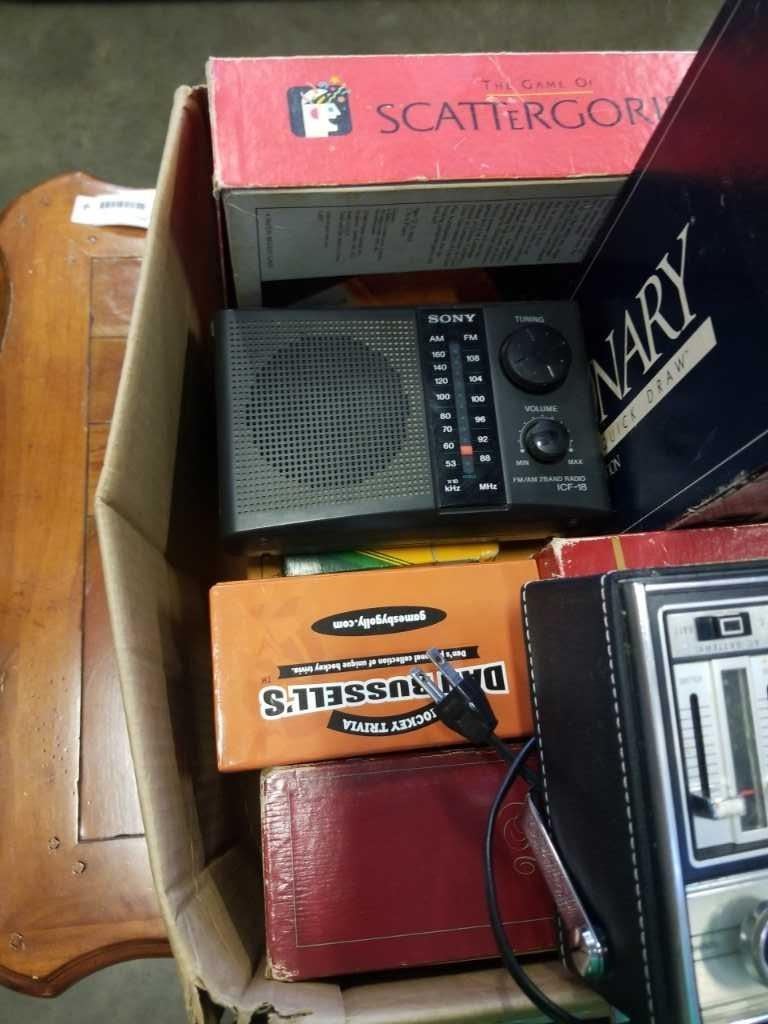BOX OF BOARD GAMES AND 2 VINTAGE RADIOS