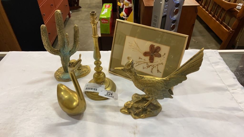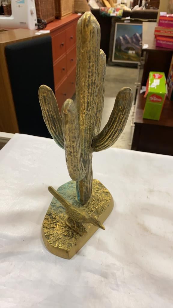 BOX OF BRASS FIGURES CACTUS, ROADRUNNER