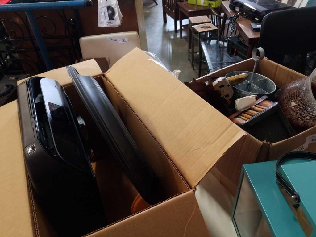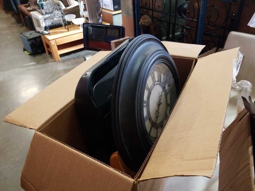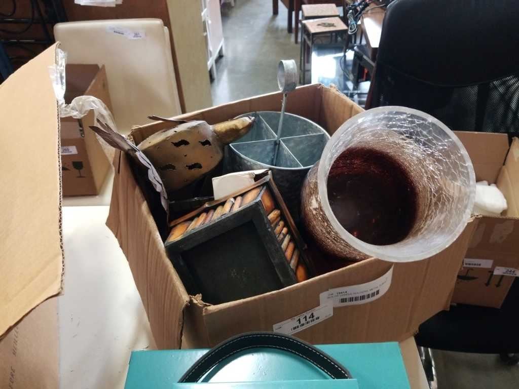 BOX OF CANDLE HOLDERS, METAL TURKEY, DECOR, CLOCK