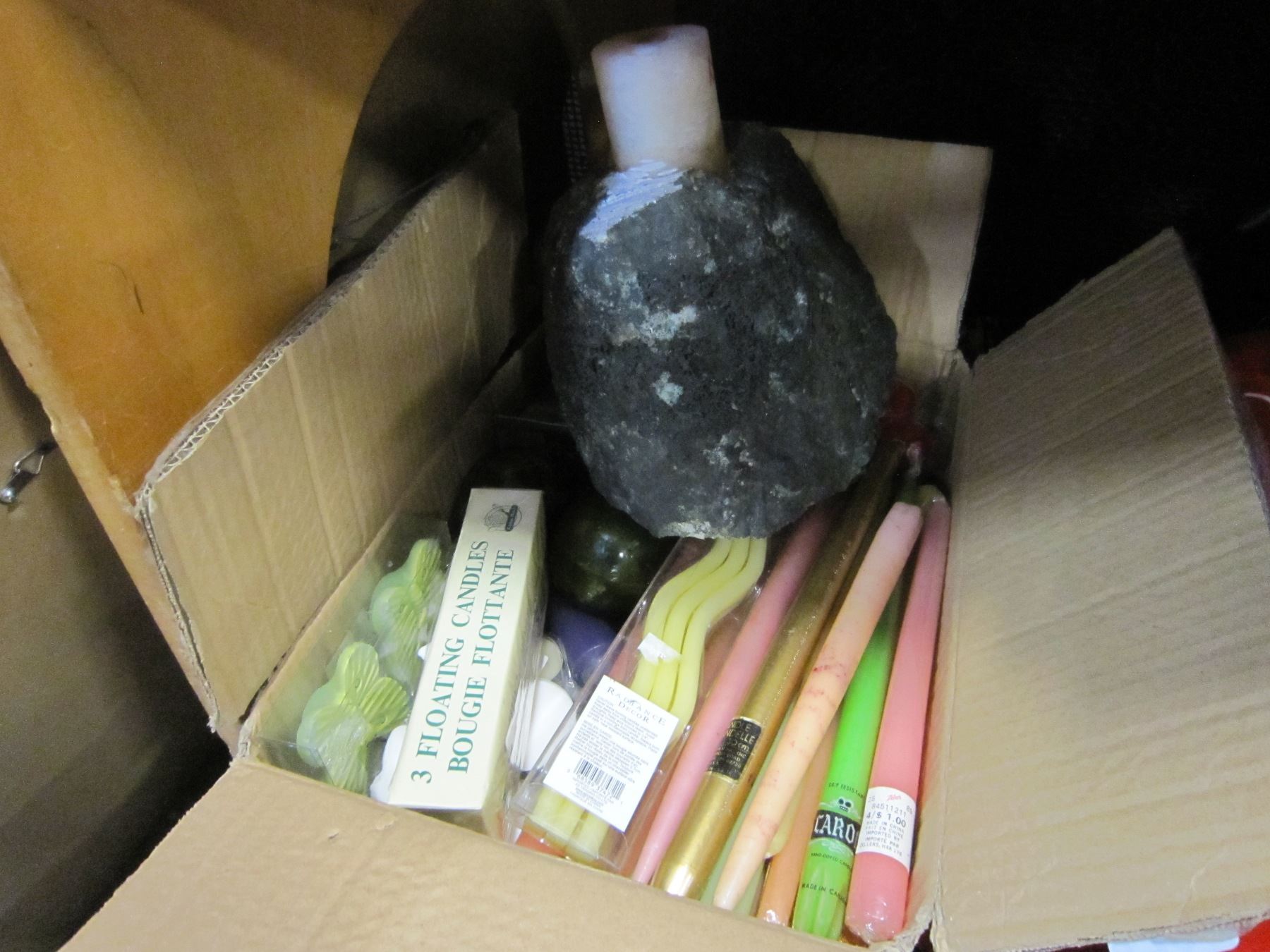 BOX OF CANDLES W/ FOUNTAIN BASE