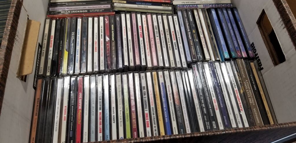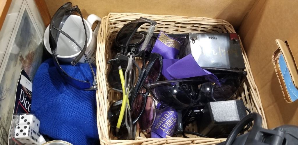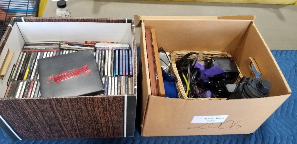 BOX OF CD'S AND BOX OF ASSORTED SUNGLASSES, COLLECTIBLES ETC