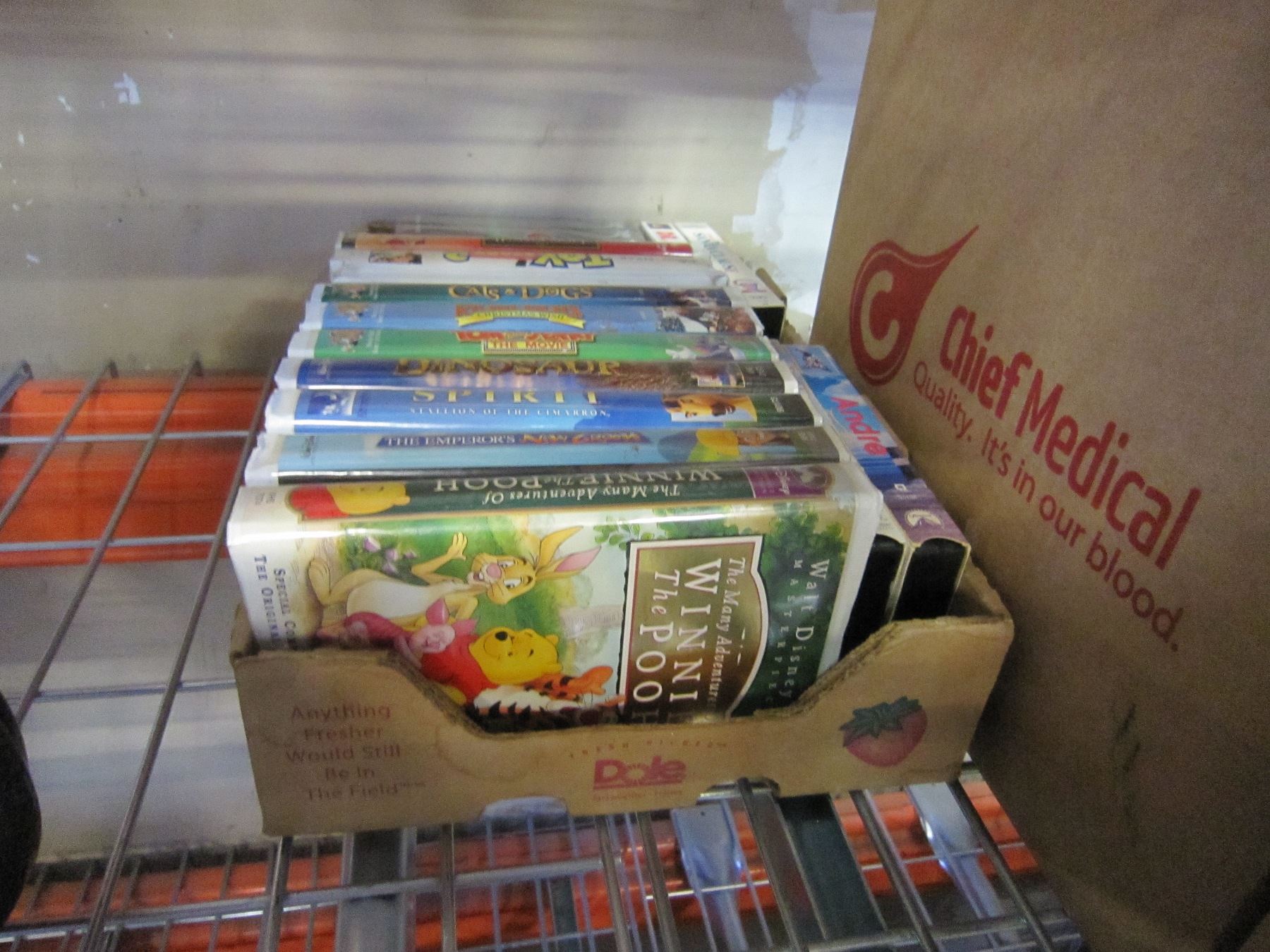 BOX OF CDS AND TRAY OF DISNEY VHS