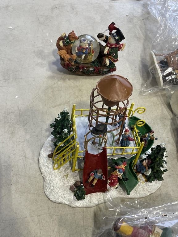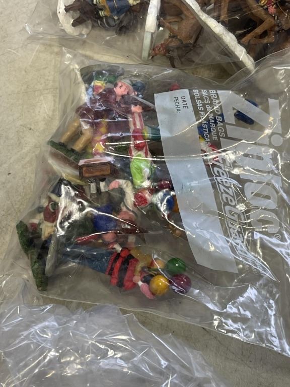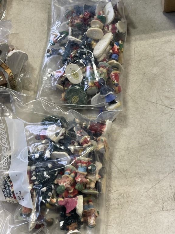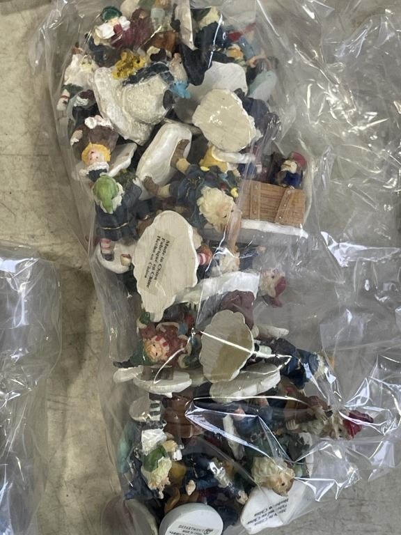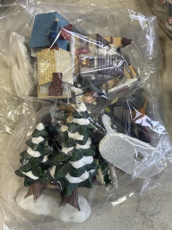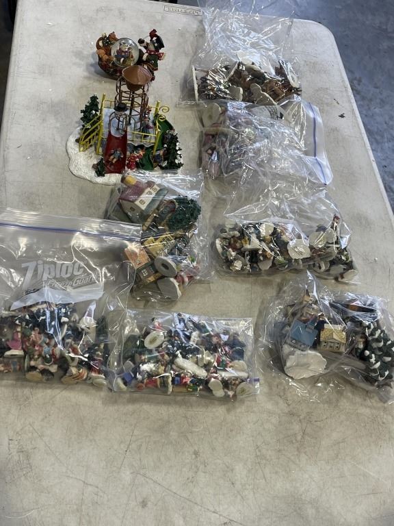BOX OF CHRISTMAS VILLAGE PEOPLE AND ACCESSORIES