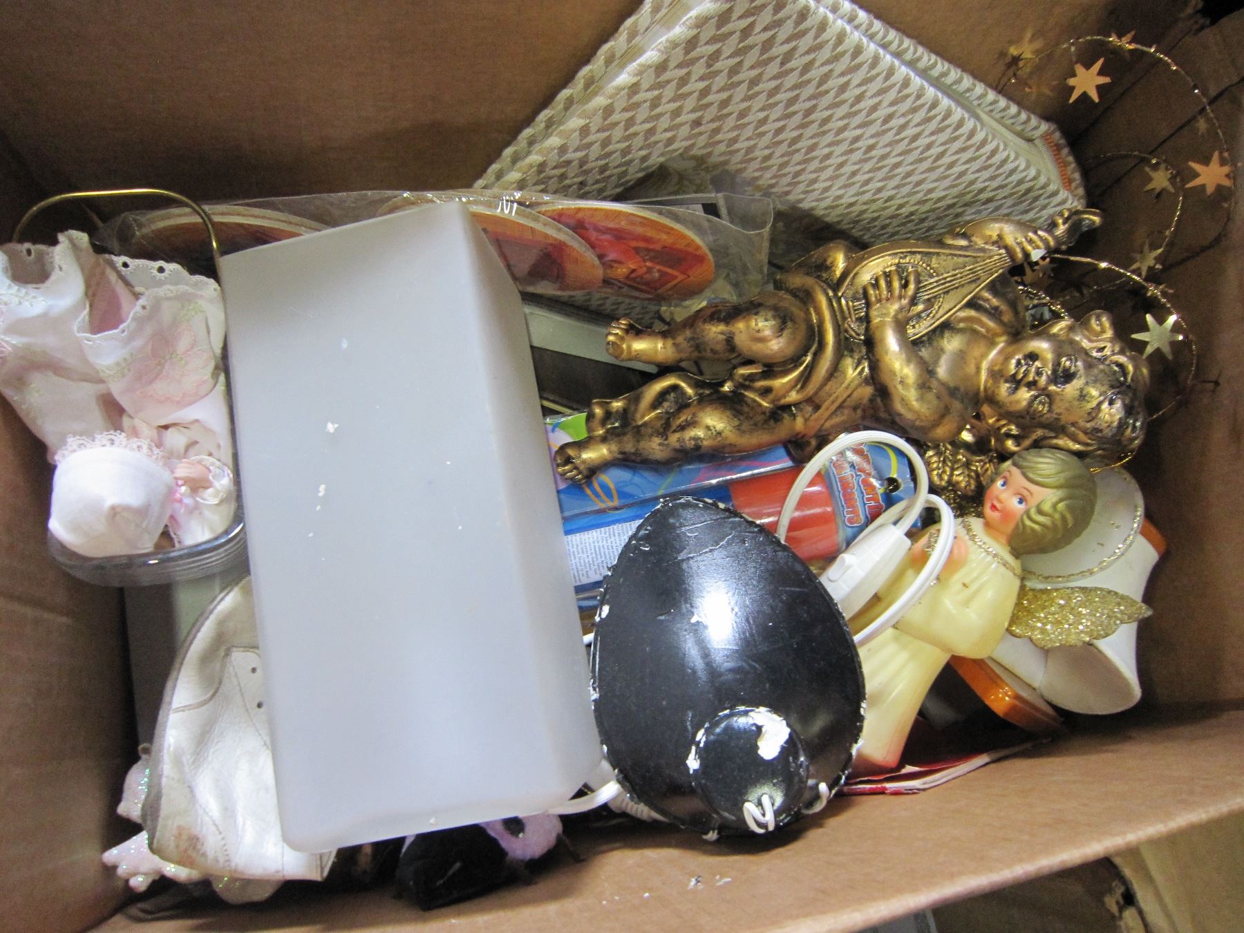 BOX OF COASTERS, LAMP, AND ESTATE GOODS