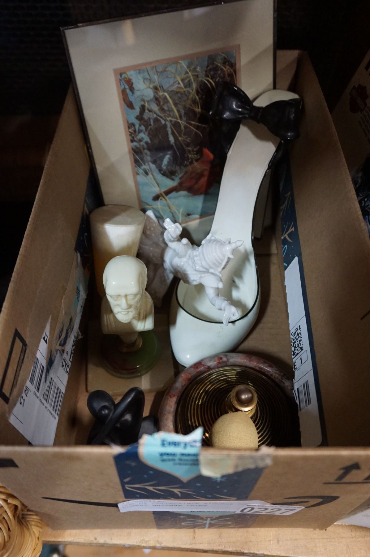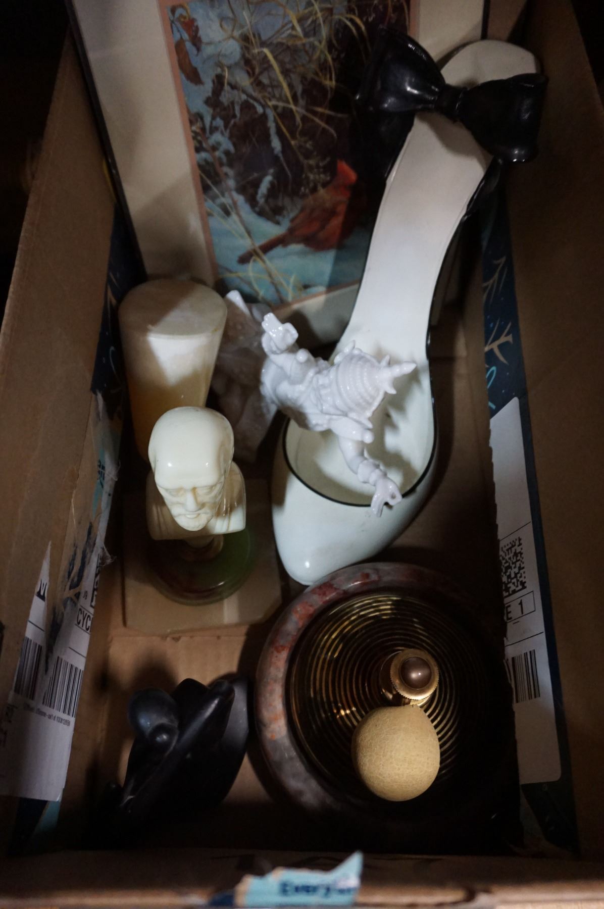 BOX OF COLLECTIBLE FIGURES AND ROBERT BATEMAN PRINT