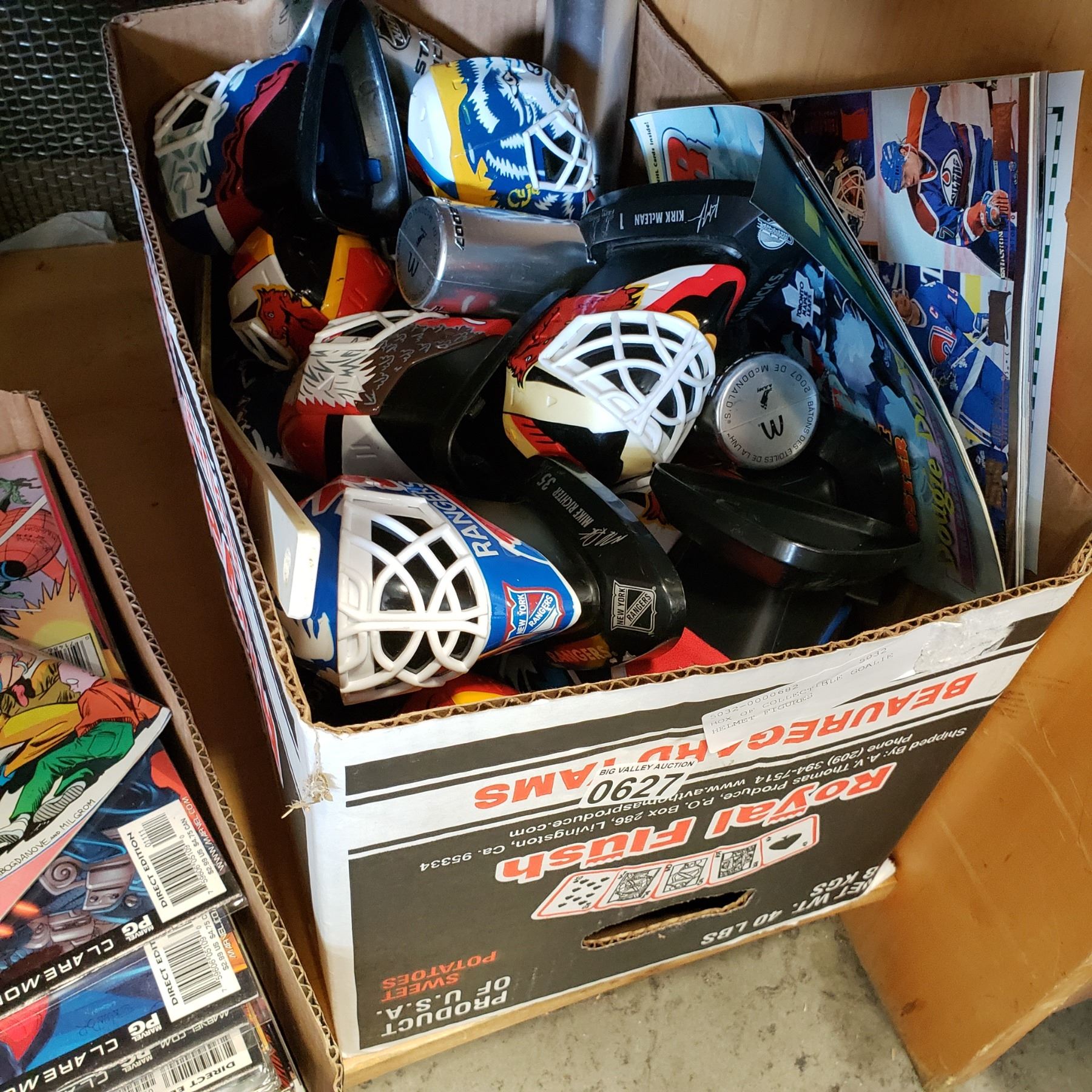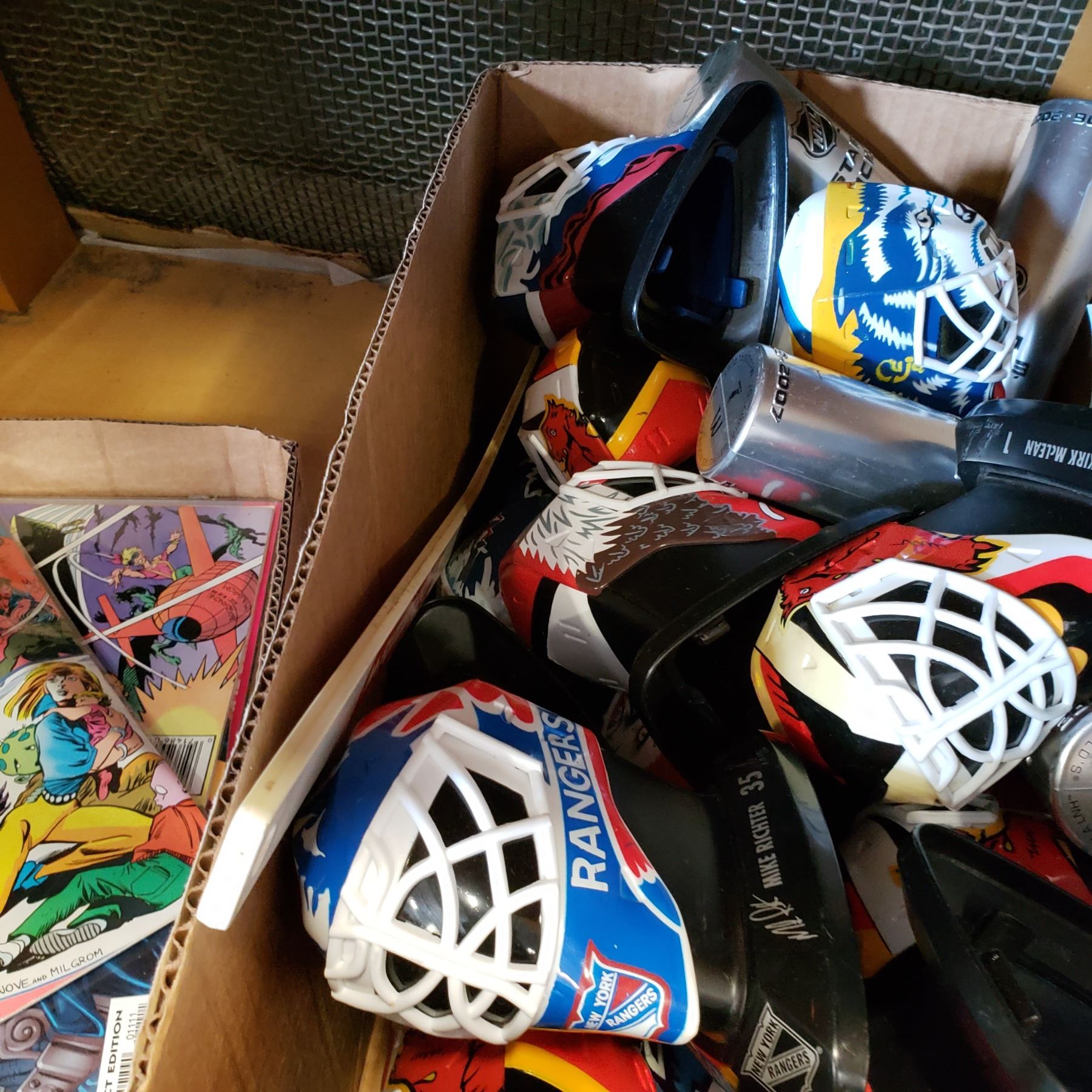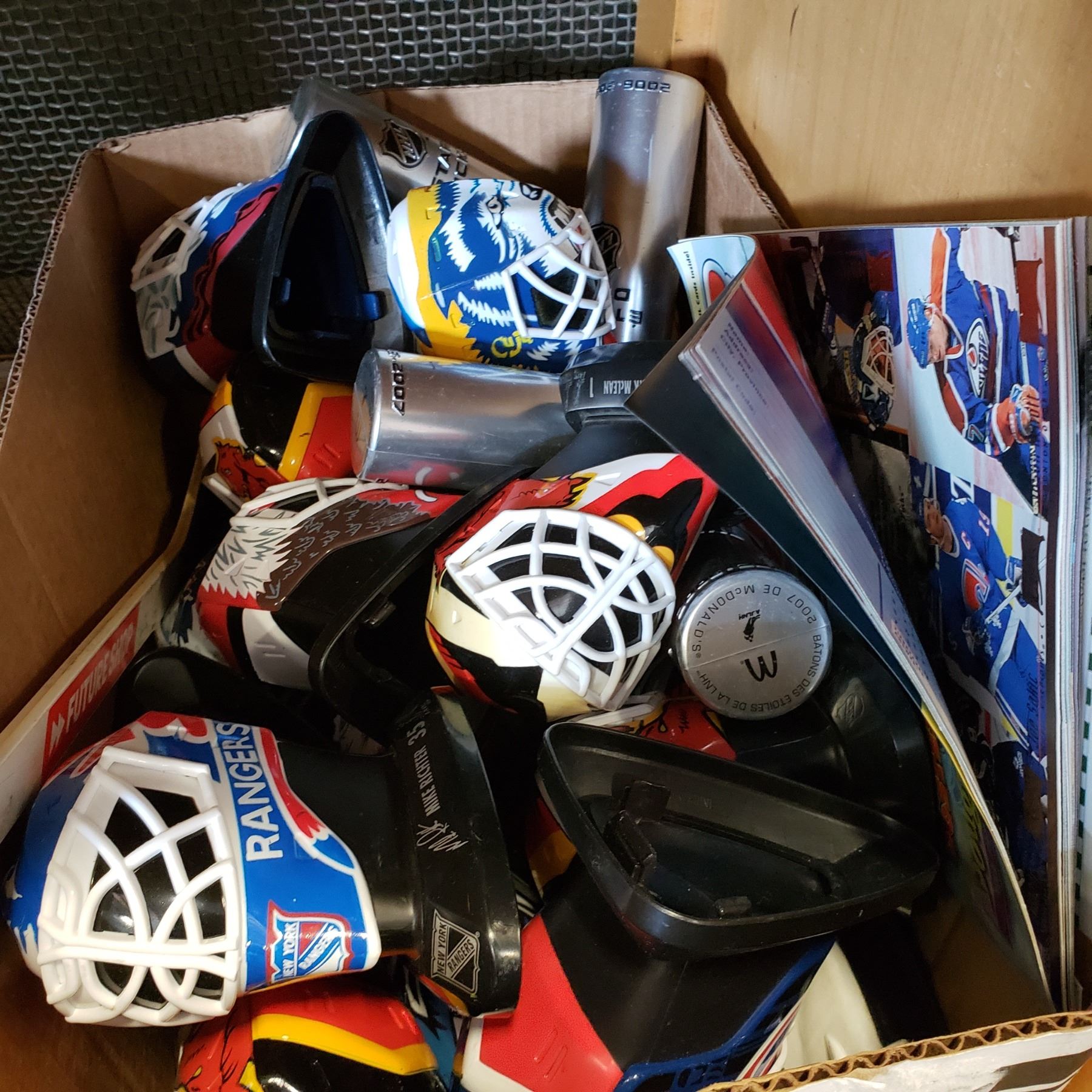 BOX OF COLLECTIBLE GOALIE HELMET FIGURES