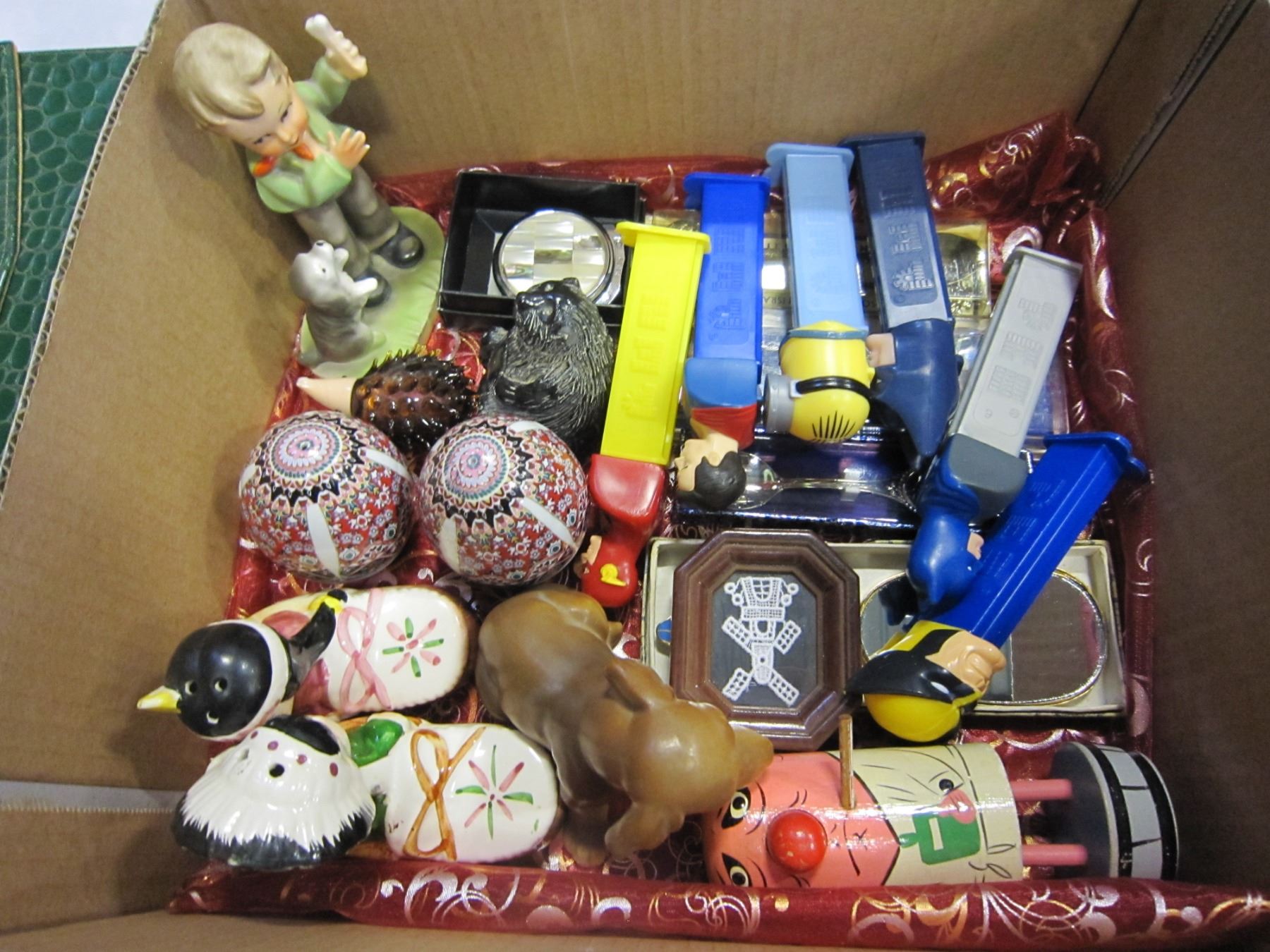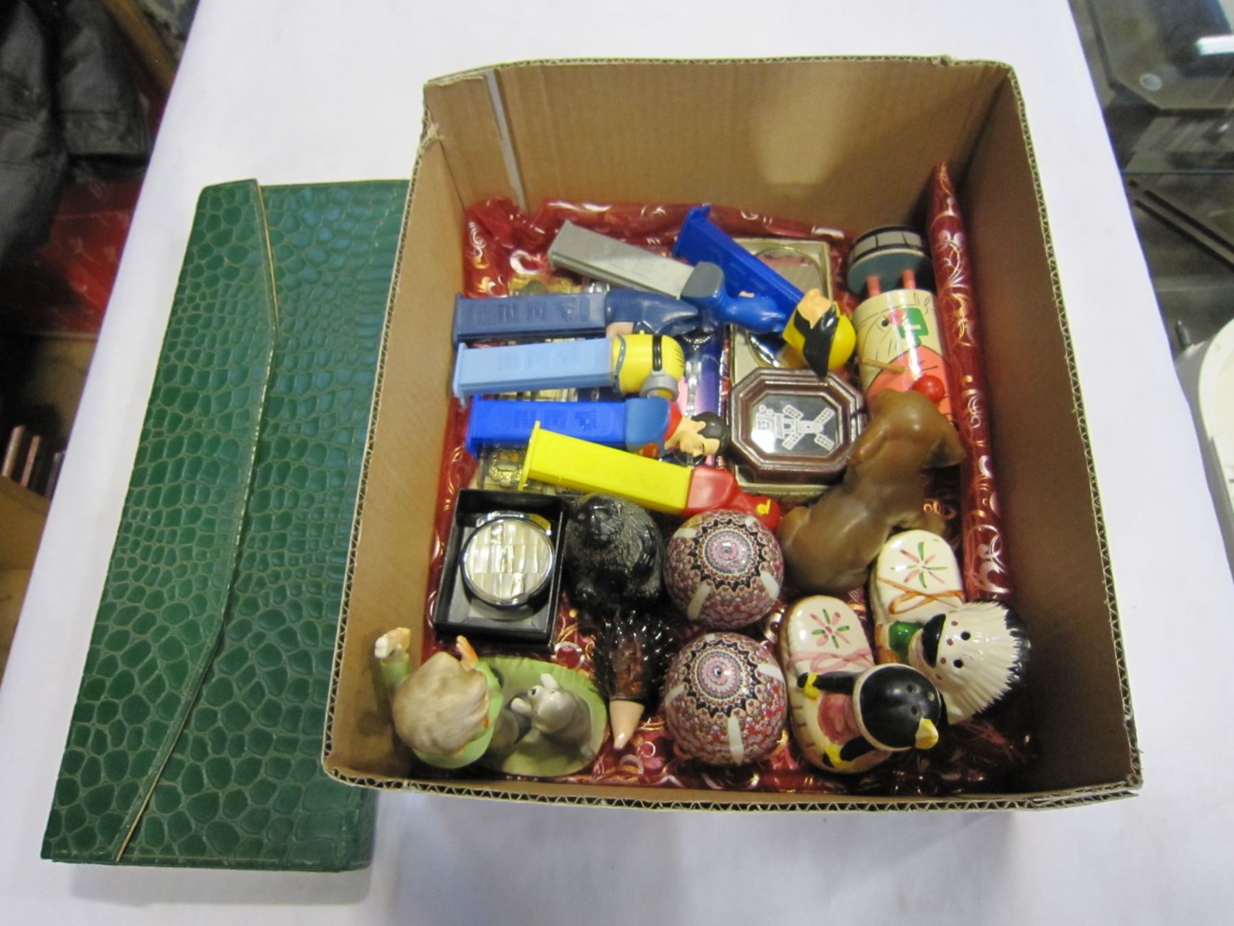 BOX OF COLLECTIBLES W/ CARVING TOOLS IN GREEN CASE