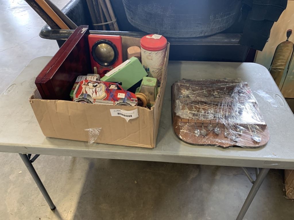 BOX OF COLLECTOR TINS AND COLLECTOR SPOONS