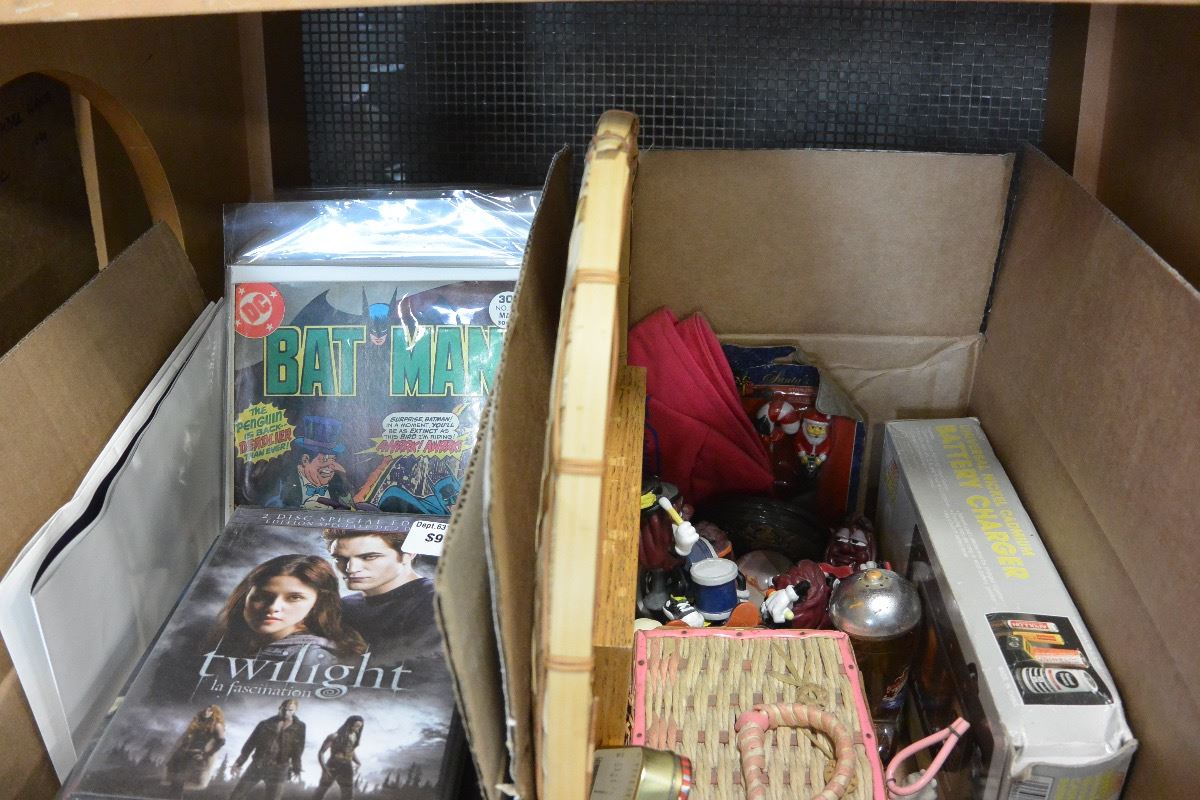 BOX OF COMICS AND DVD'S AND BOX OF COLLECTIBLES