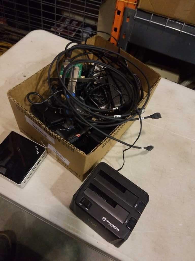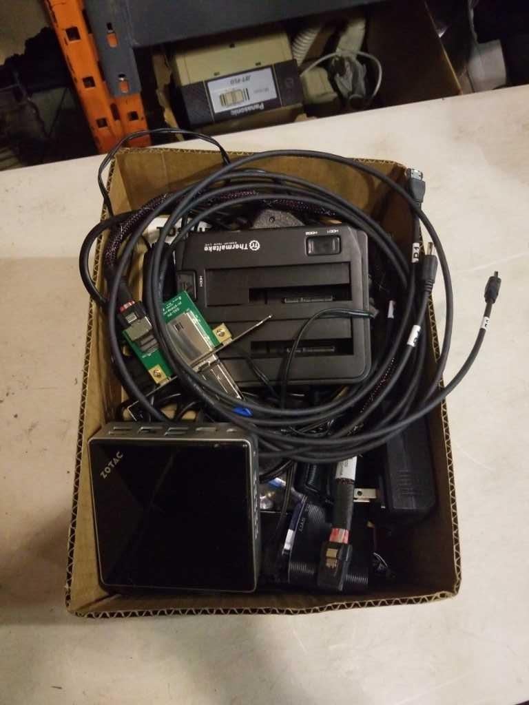 BOX OF COMPUTER PARTS INCLUDING ZOTAC MINI PC