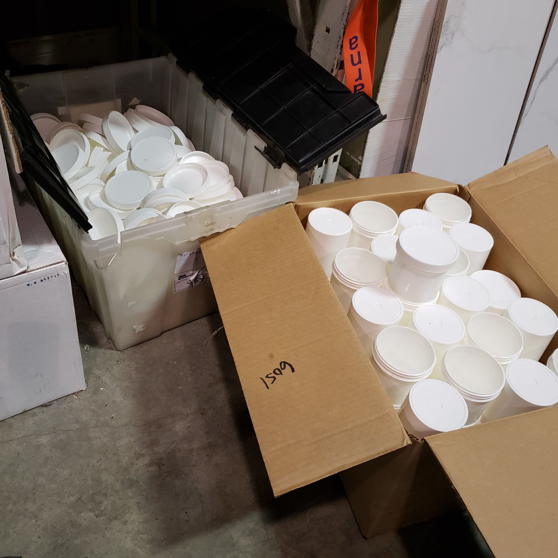 BOX OF CONTAINERS AND TOTE OF LIDS