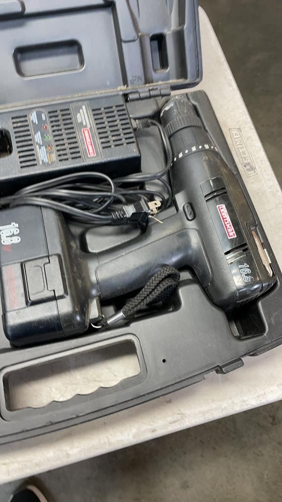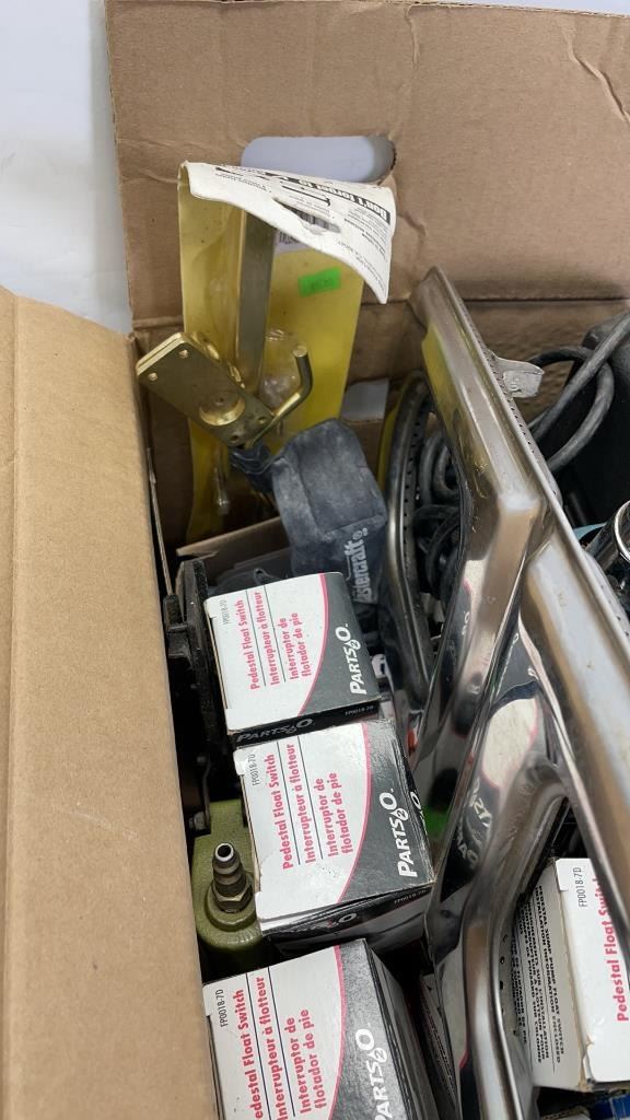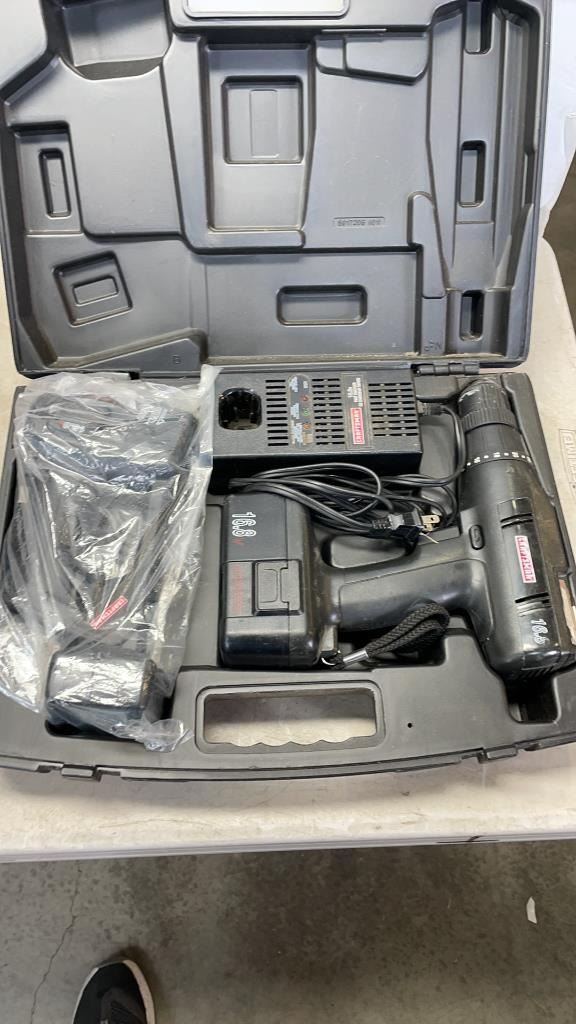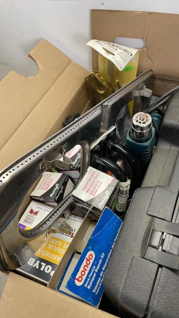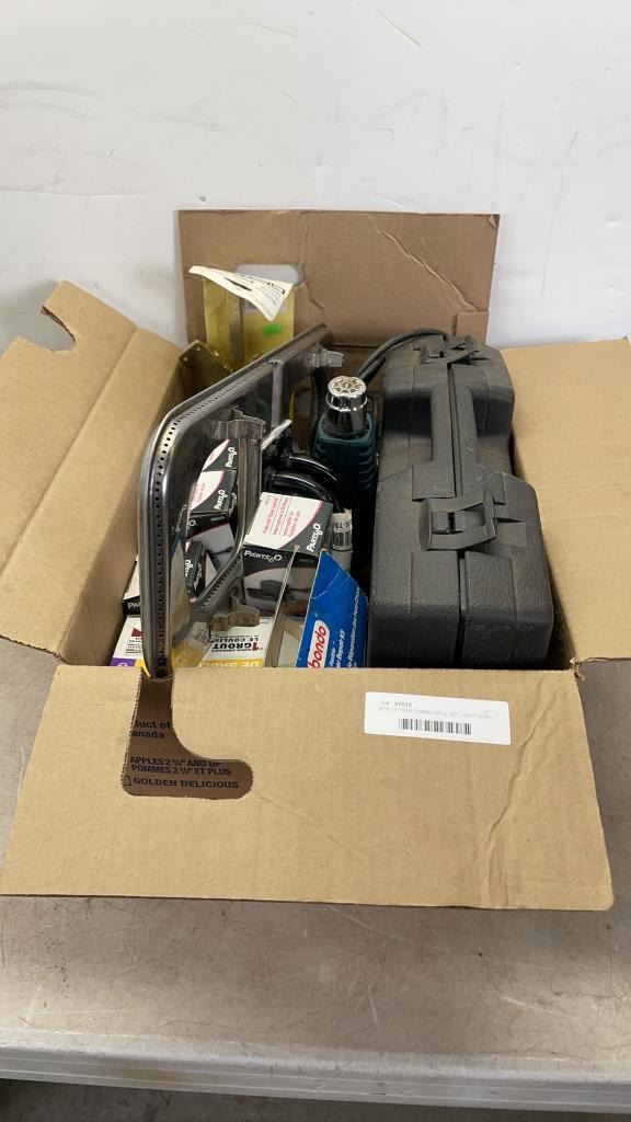 BOX OF CRAFTSMAN DRILL SET, HEAT GUN, BBQ BURNER AND MORE
