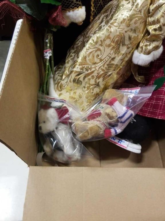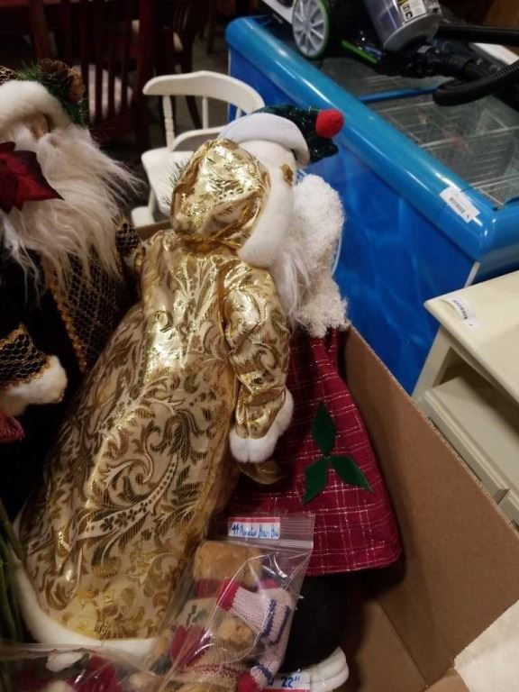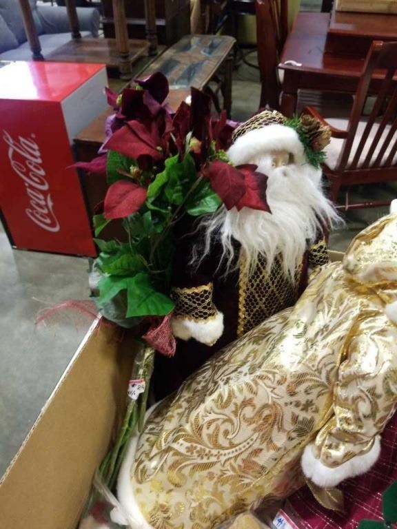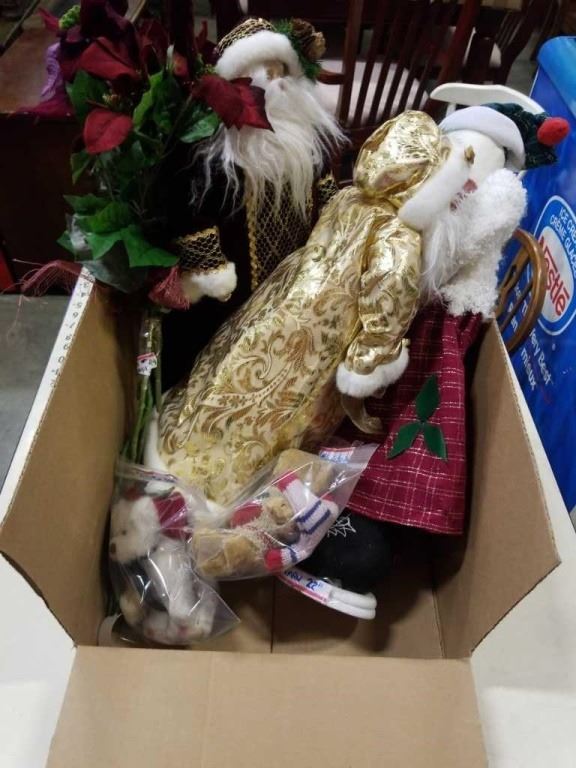 BOX OF CRANBERRY POINSETTIAS, AND CHRISTMAS FIGURES