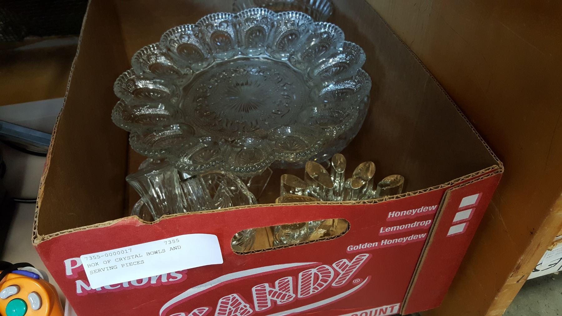 BOX OF CRYSTAL BOWLS AND SERVING PIECES