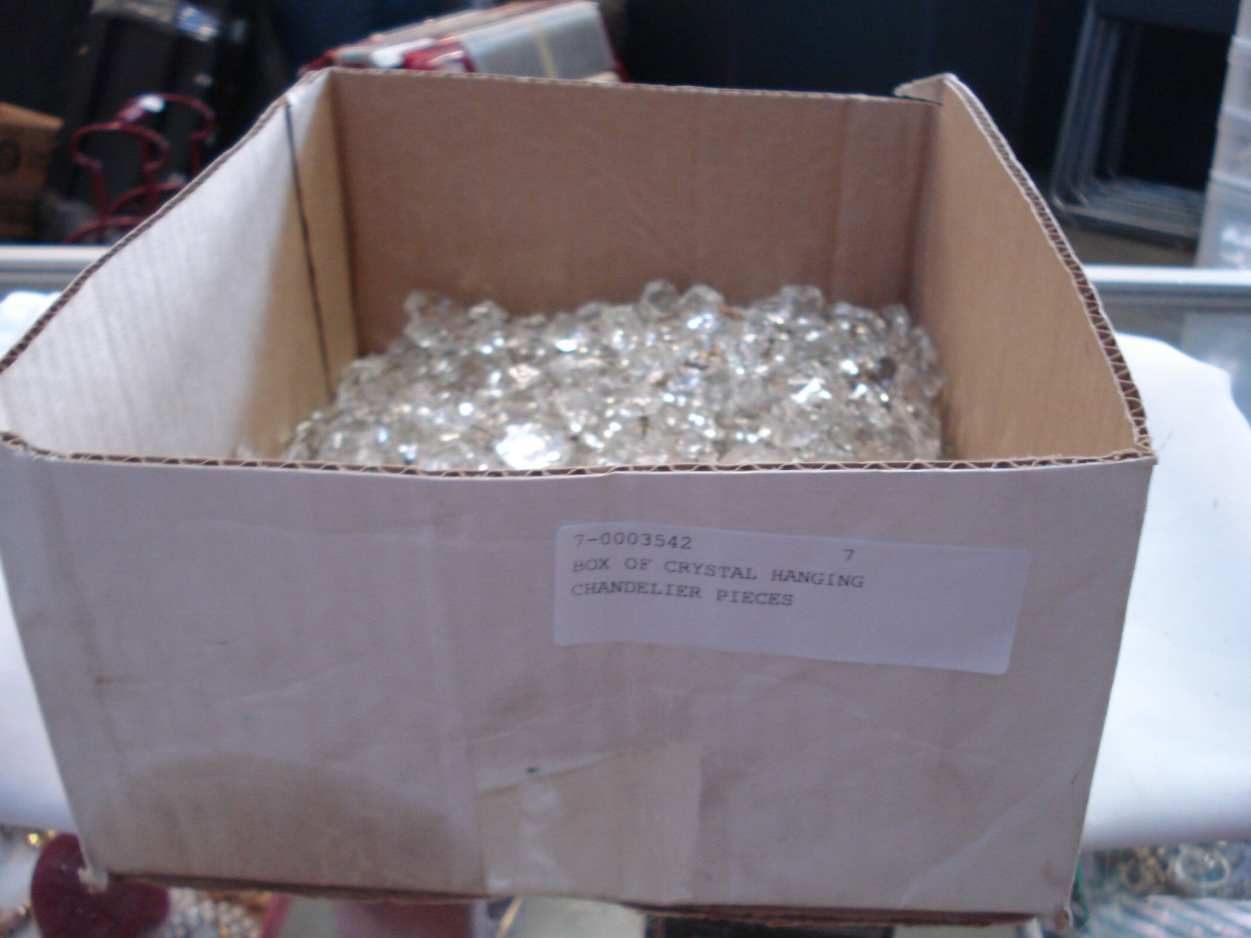 BOX OF CRYSTAL HANGING CHANDELIER PIECES
