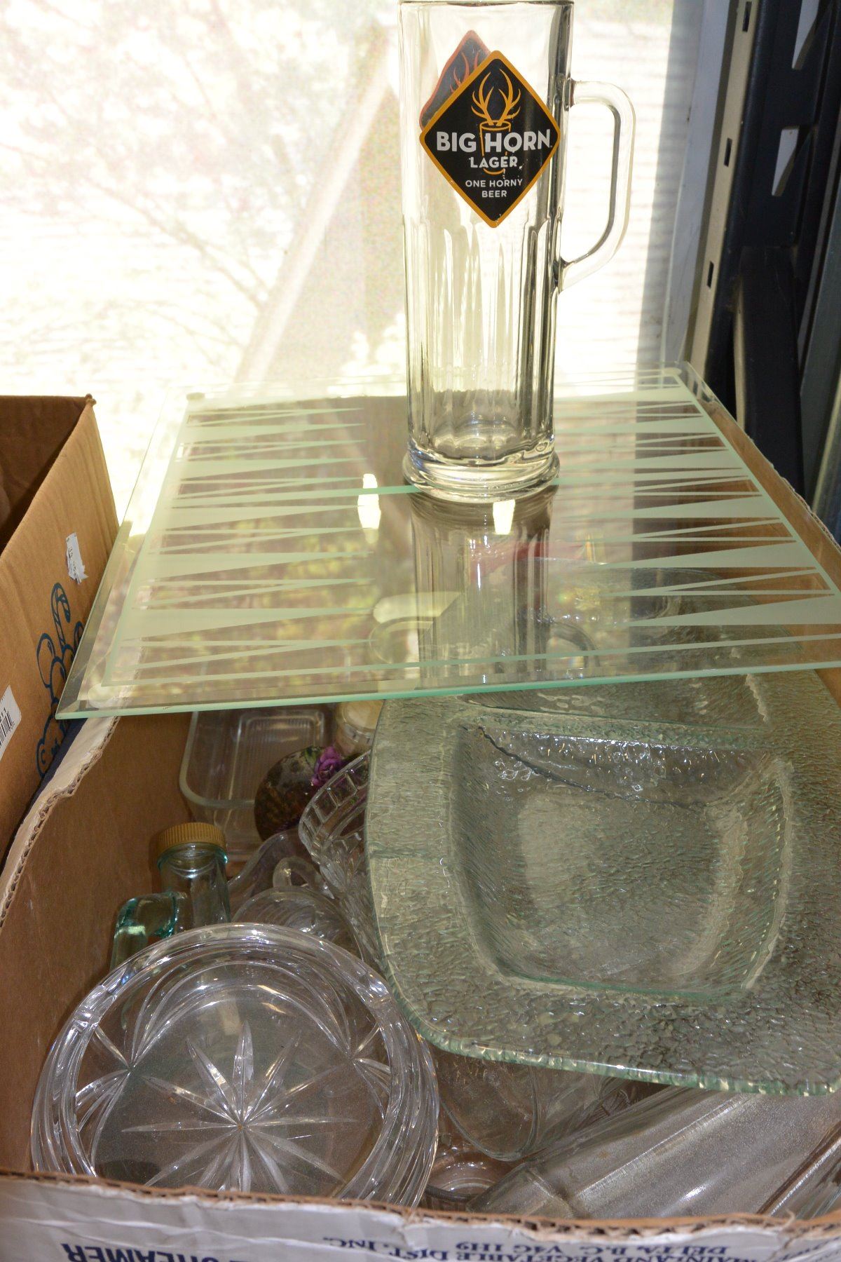 BOX OF CRYSTAL SERVING PIECES