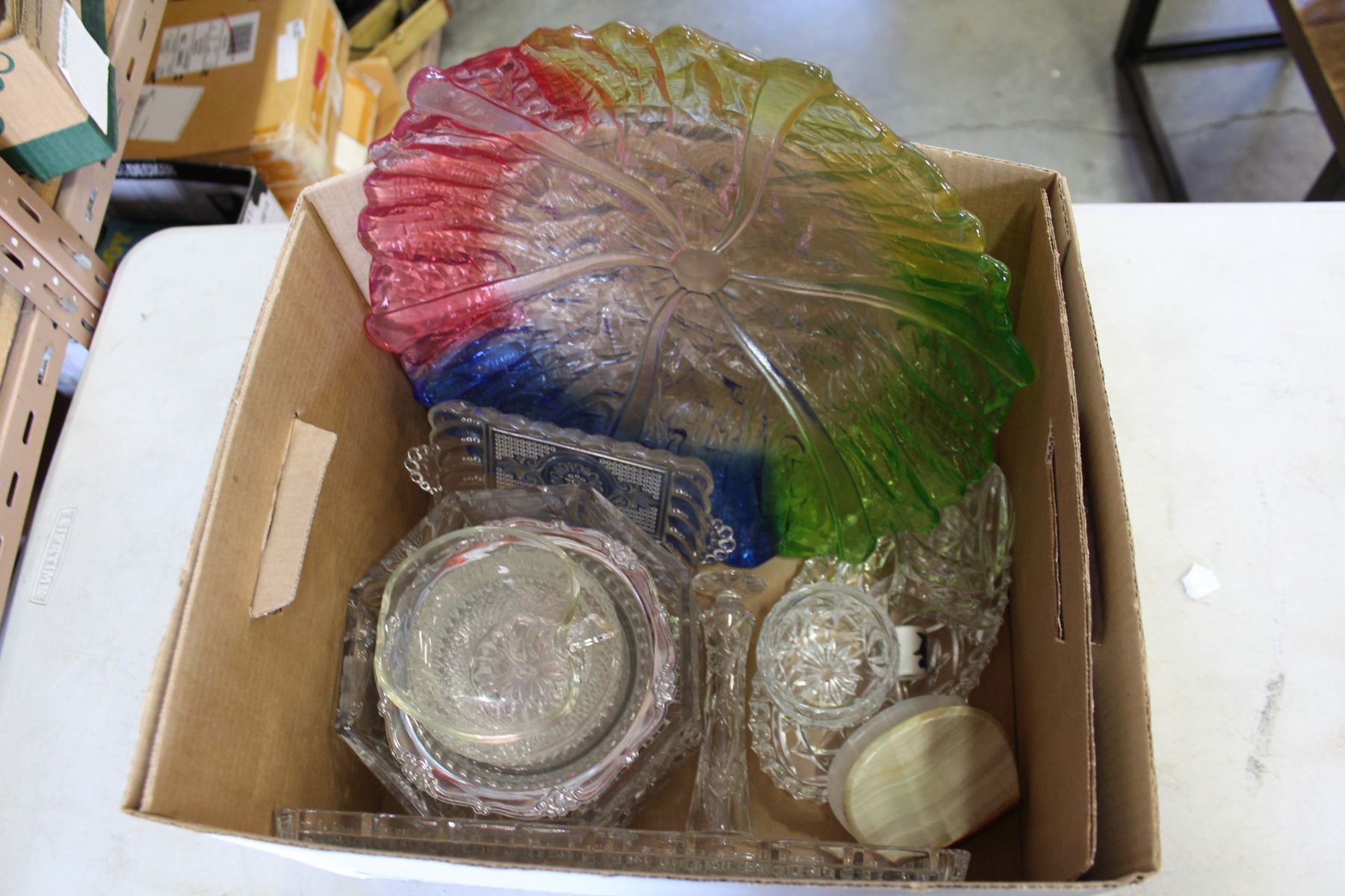 BOX OF CRYSTAL SERVING PIECES